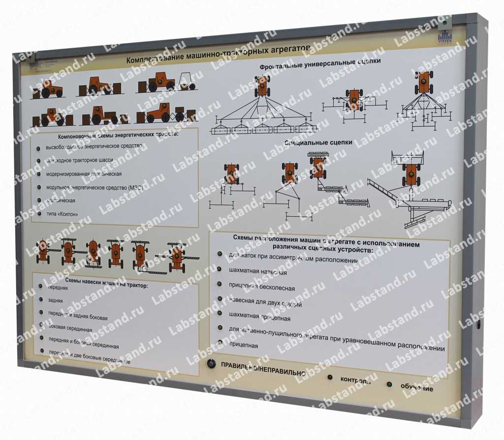 Назначение: Стенд-планшет предназначен для изучения принципа комплектования машинно-тракторного парка для различных сельскохозяйственных процессов в учебном курсе «Эксплуатация технических средств».
