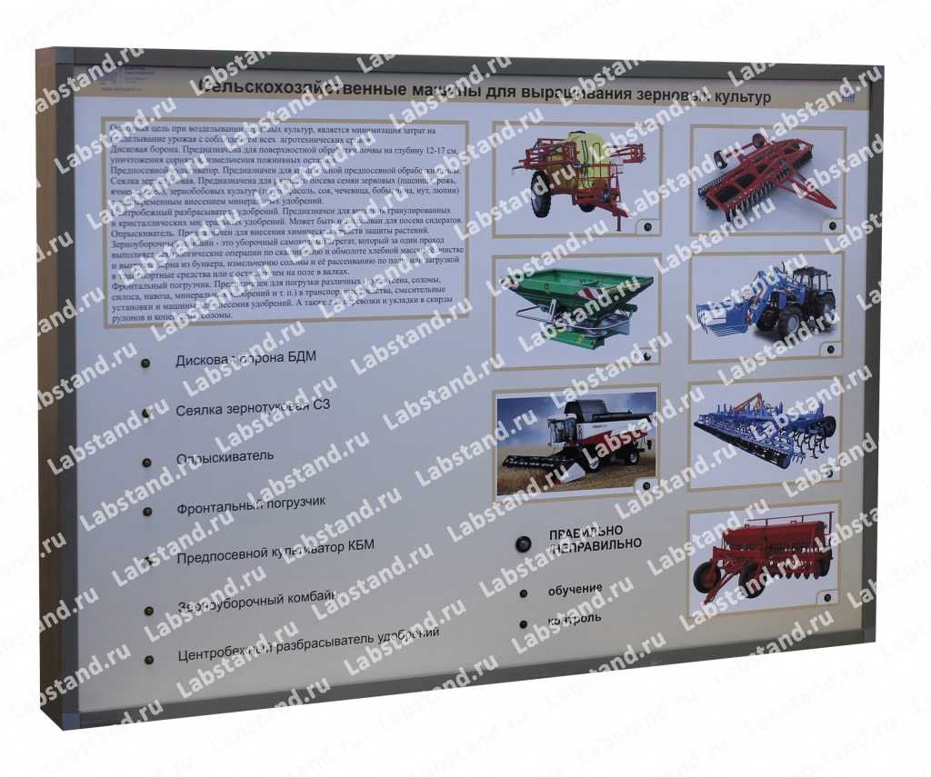 Назначение: Стенд-планшет предназначен для изучения сельскохозяйственных машин, используемых в технологии выращивания зерновых культур.