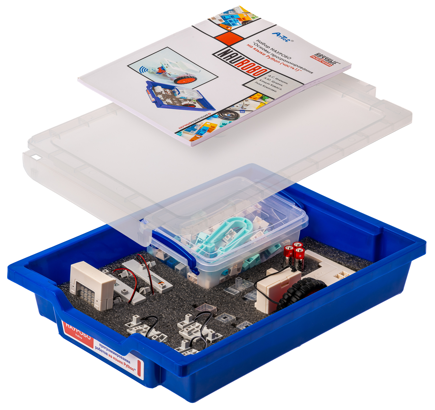 Состоит из набора для программирования роботов на языке Python, который предназначен для обучения детей среднего и старшего возраста приемам программирования робототехнических устройств на языке Python.