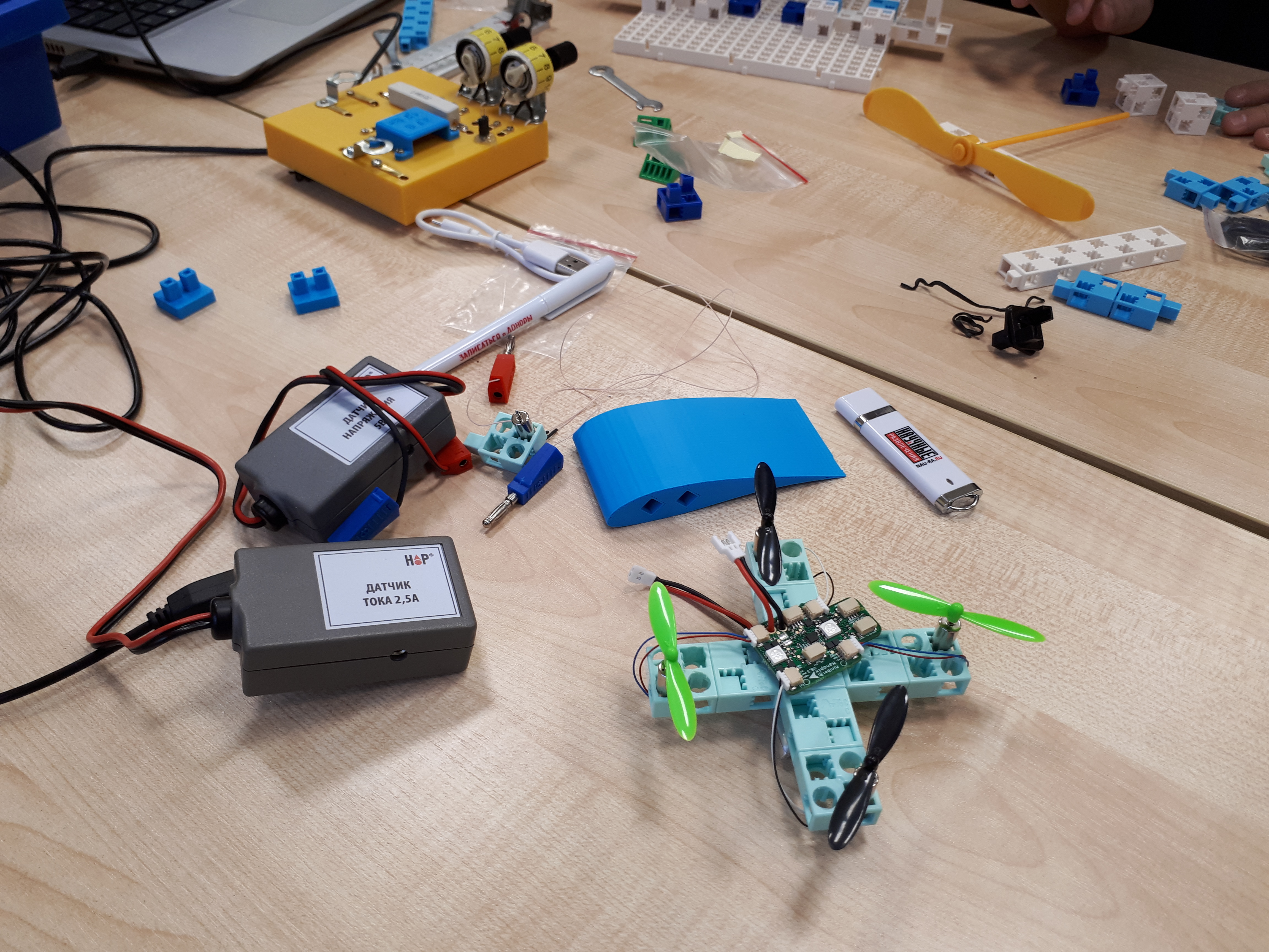 Образовательный модуль даёт педагогу и ученикам возможность провести лабораторные работы и создать исследовательские проекты: собрать из кубиков модель дрона, а после экспериментировать с ним – программировать, делать балансировку, запускать и планировать траекторию его полетов.