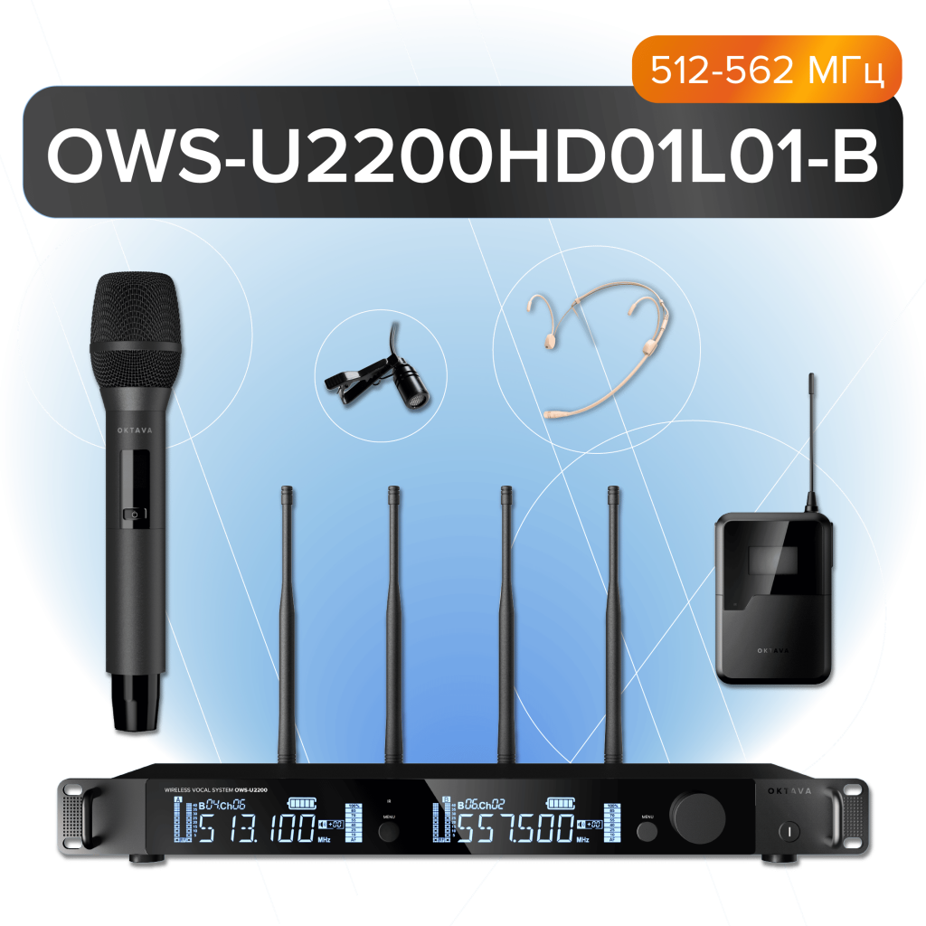 Двухканальная цифровая радиосистема Октава OWS-U2200 - ультимативное решение для сцены, объединившее в себе все самые актуальные продукты линейки первых отечественных радиосистем - Октава OWS. В комплектацию OWS-U2200HDL входит: • OWS-U2200R Двухканальный приемник радиосистемы - 1 шт. • OWS-U1200TH Ручной передатчик без съемного капсюля - 1 шт. • OWS-U1200TB Поясной передатчик - 1 шт. • OWS-D01 Головной микрофон - 1 шт. • OWS-L01 / OWS-L02 Петличный микрофон - 1 шт. • Съёмные антенны с BNC-разъёмами - 4 шт. • Стандартный блок питания - 1 шт. • Ветрозащита для ручного передатчика - 1 шт. • Ветрозащита для головного микрофона - 3 шт. • Ветрозащита для петличного микрофона - 3 шт. • Кабель Jack 6,35 - Jack 6,35 (моно) 1 метр - 1 шт. • Батарейки типа АА - 4шт.