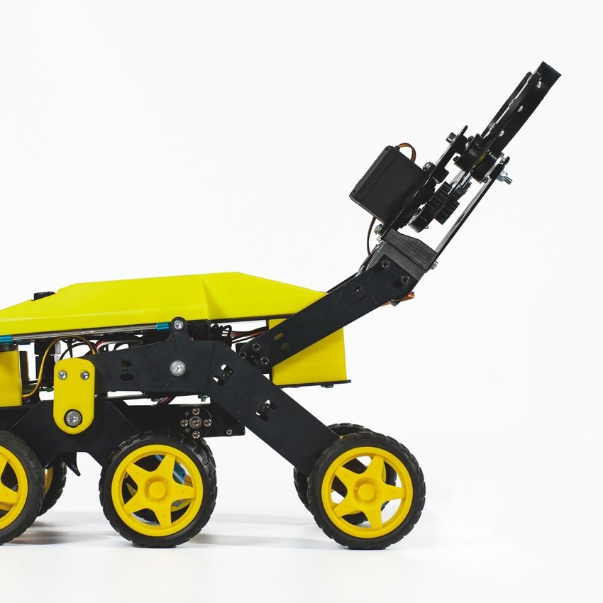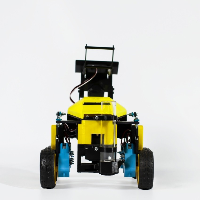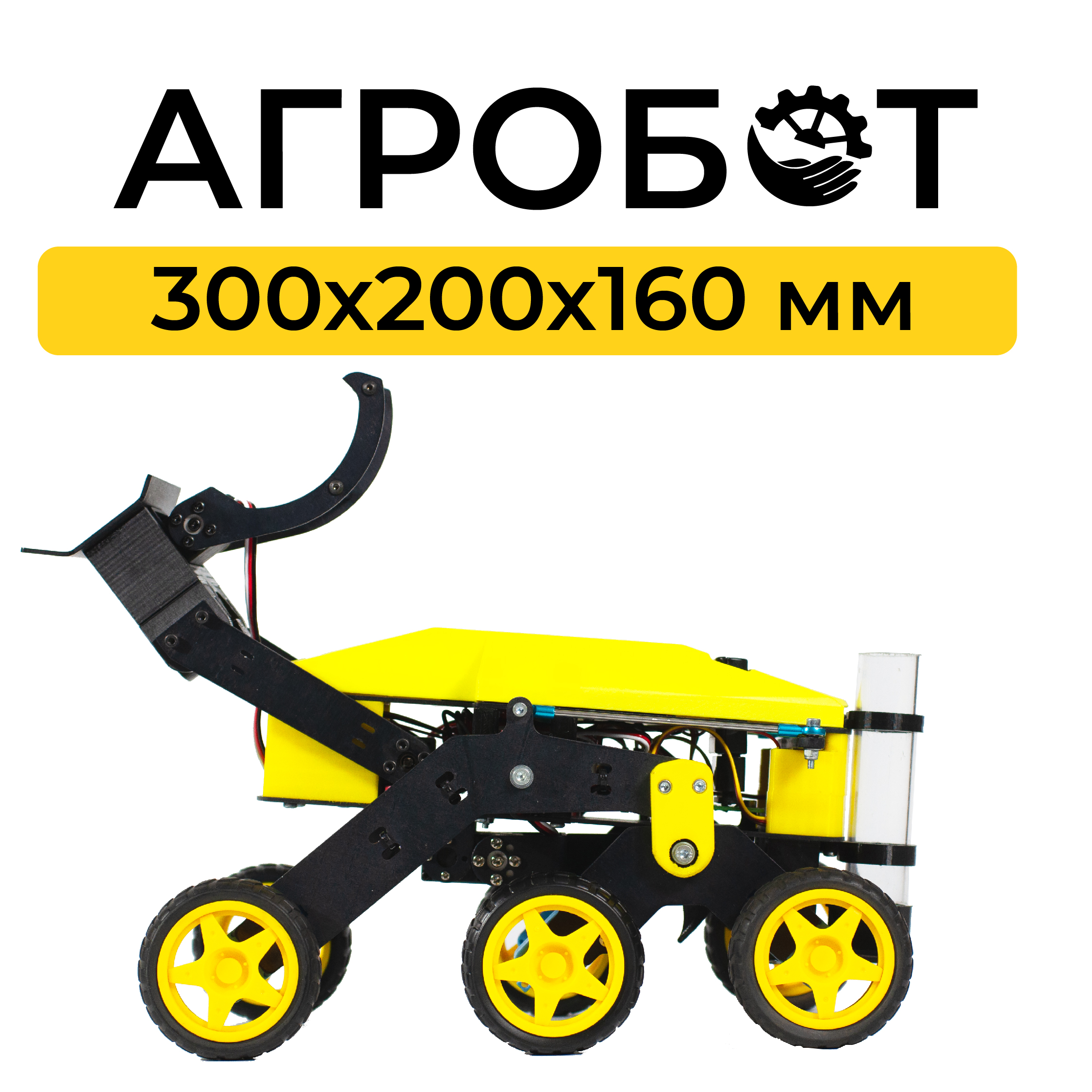 Hобототехнический конструктор на базе шестиколесного шасси. На робота установлено навесное оборудование - устройство имитации посадки картофеля, имитация плуга и схват с отвалом, сменяемый однозвенным манипулятором.