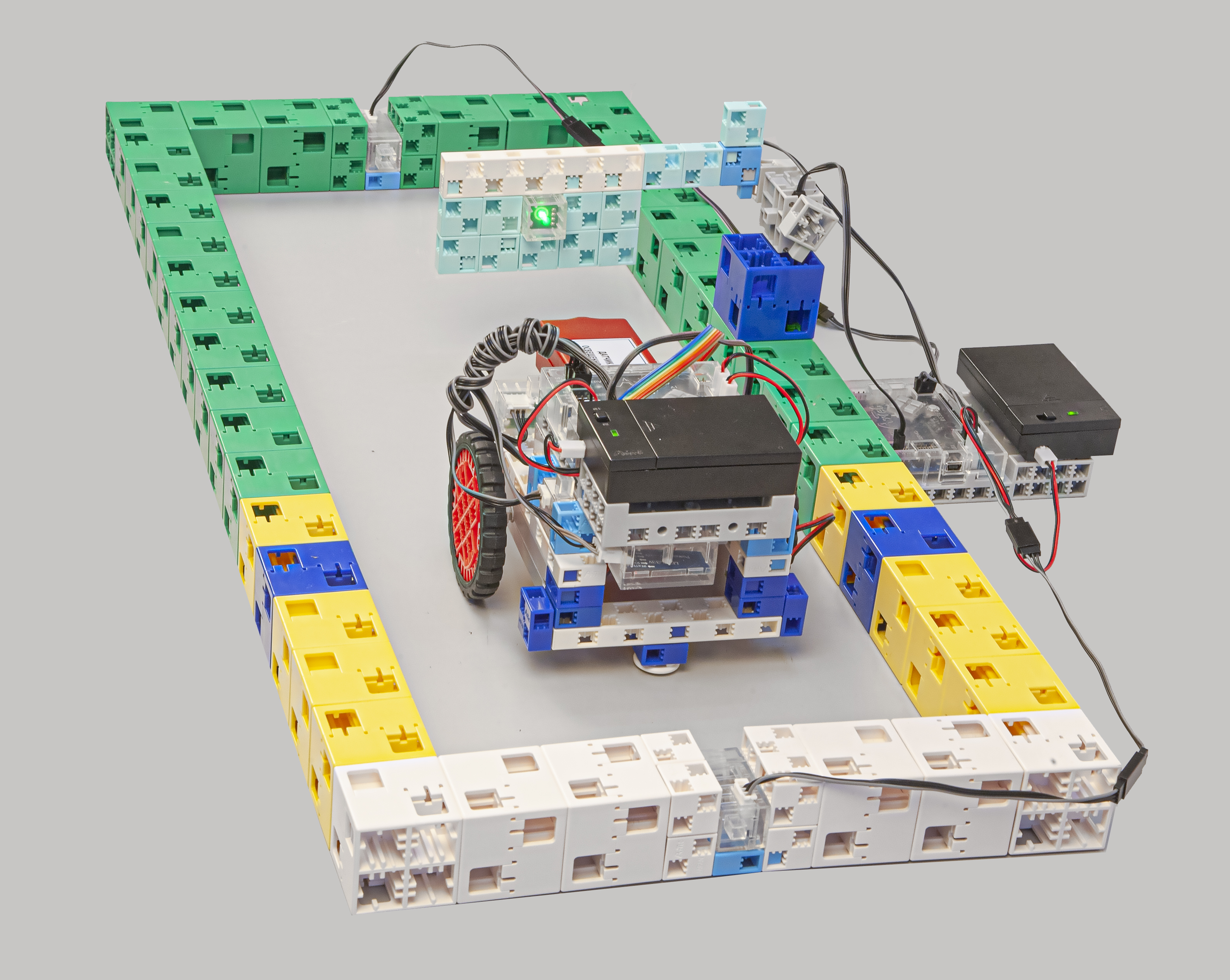 В состав комплекта входит несколько вариантов «Умной среды» для робота — это варианты полигонов, собранные из кубиков. Предполагается, что дети будут программировать робота на выполнение ряда задач для достижения цели. Сам полигон может быть любым, с различными препятствиями и задачами, при этом он тоже программируемый, но задачи по программированию полигона более сложные и могут выполняться разными способам: