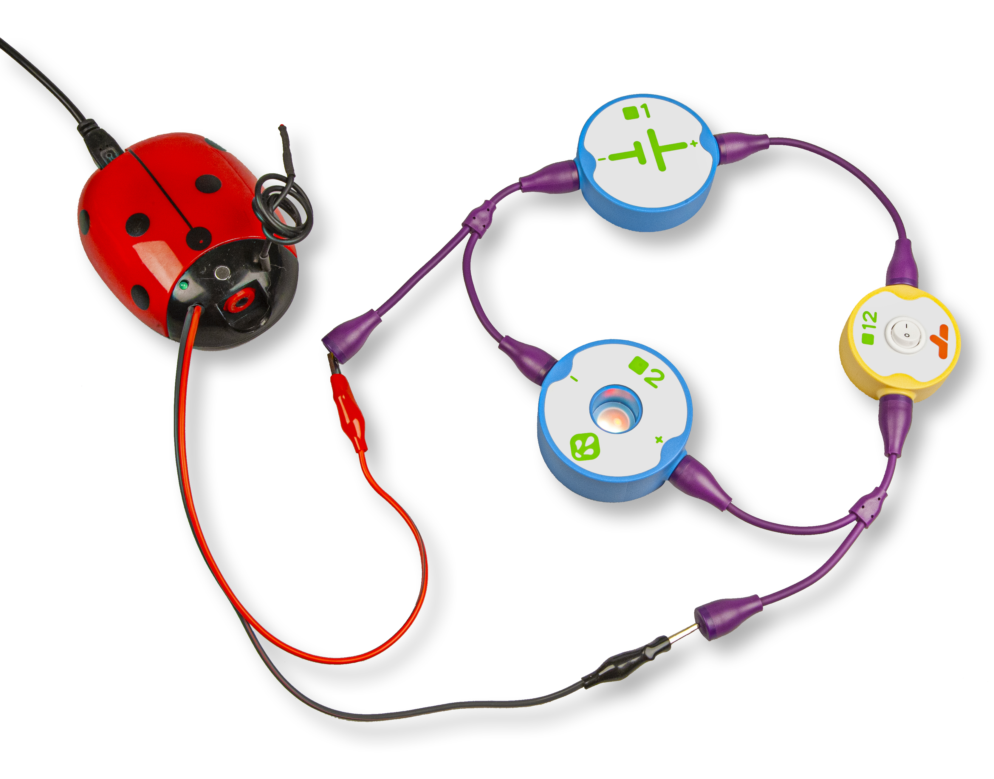 Набор знакомит детей с устройством электрических цепей и самим понятием электрического тока. С помощью этого конструктора можно составлять как простейшие электрические цепи, так и с параллельными и последовательными модулями.