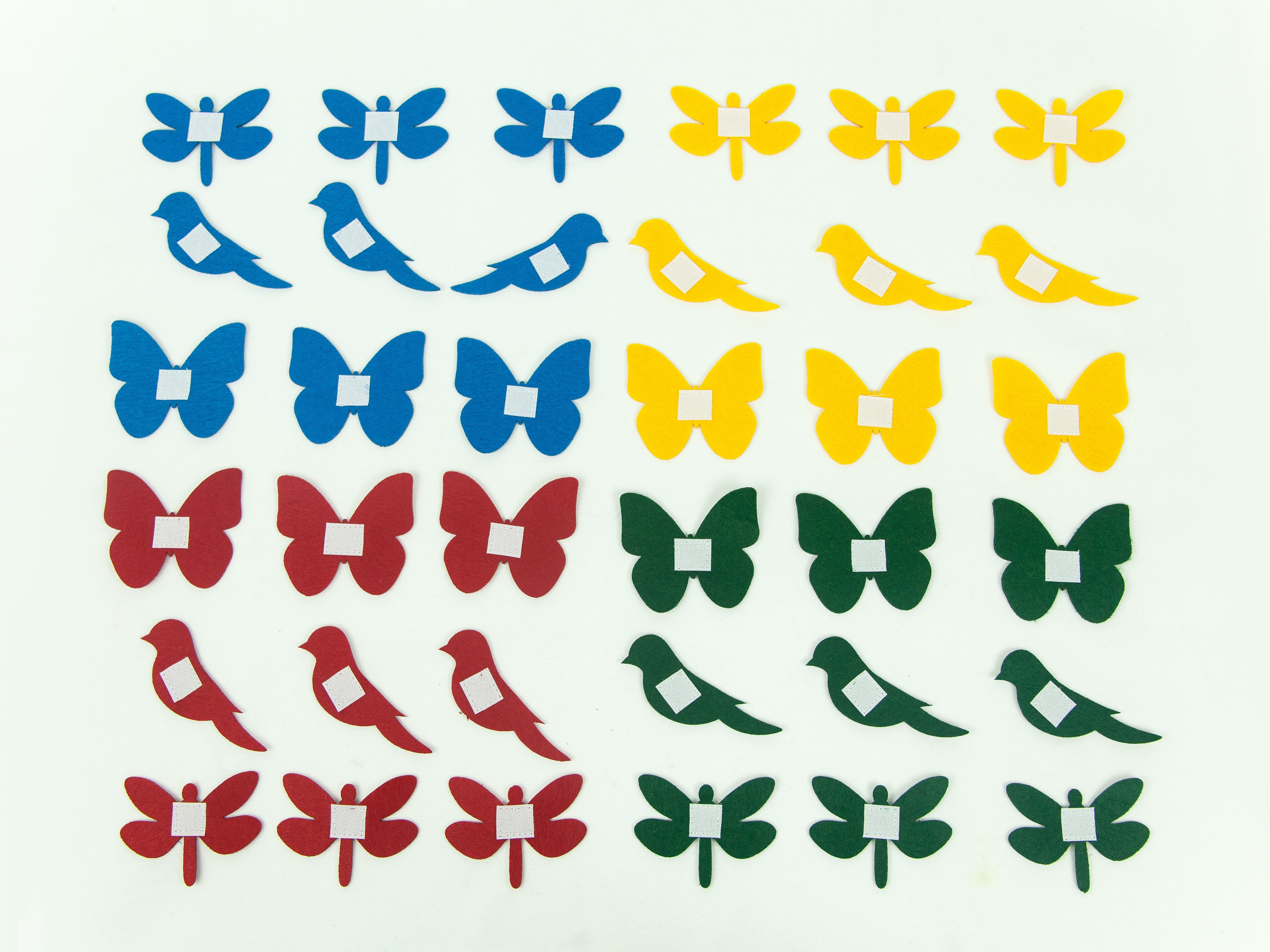 Аксессуары для жилета с 32 липучками: бабочки, птички, стрекозы (36 фигур)