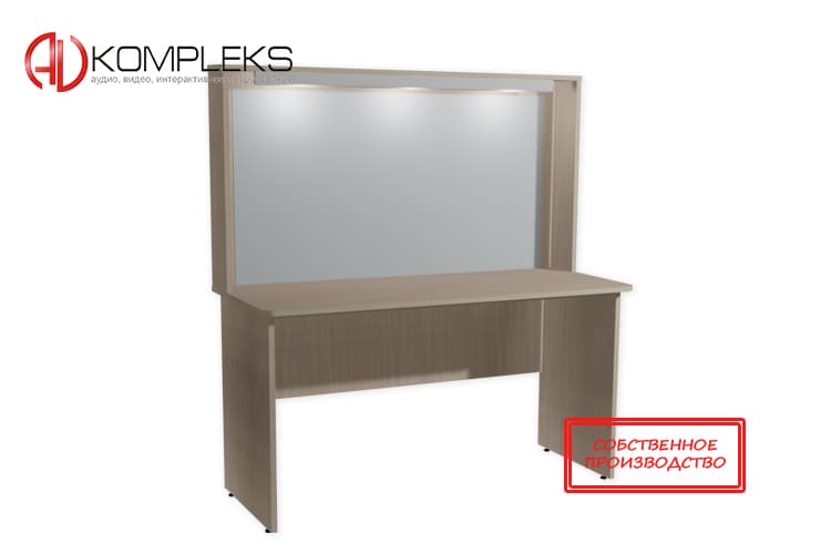 Стол оборудован зеркалом размером 584х1068 мм, светодиодным светильником, а также четырьмя регулируемыми ножками. Для производства мебели используется ламинированная ДСП и ПВХ, поэтому стол не выделяет токсичных веществ и безопасен для детей и окружающей среды. При проведении занятий по коррекции речи педагог может разместить за ним одновременно двух детей.