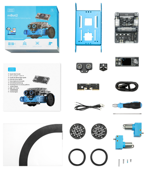Базовое и продвинутое обучение робототехнике, сетевому взаимодействию роботов, основам интернета вещей (IoT) и искуственного интеллекта (AI). Новая версия робота mBot, с проверенным временем конструктивным решением. Более быстрое и точное движение, встроенные модули связи WiFi и Bluetooth, встроенный АКБ. Съемный контроллер для изучения визуального программирования и программирования на Python. Набор mBot2 разработан для учащихся средней школы и может быть рекомендован как в возрасте 10 лет, так и старшеклассникам.