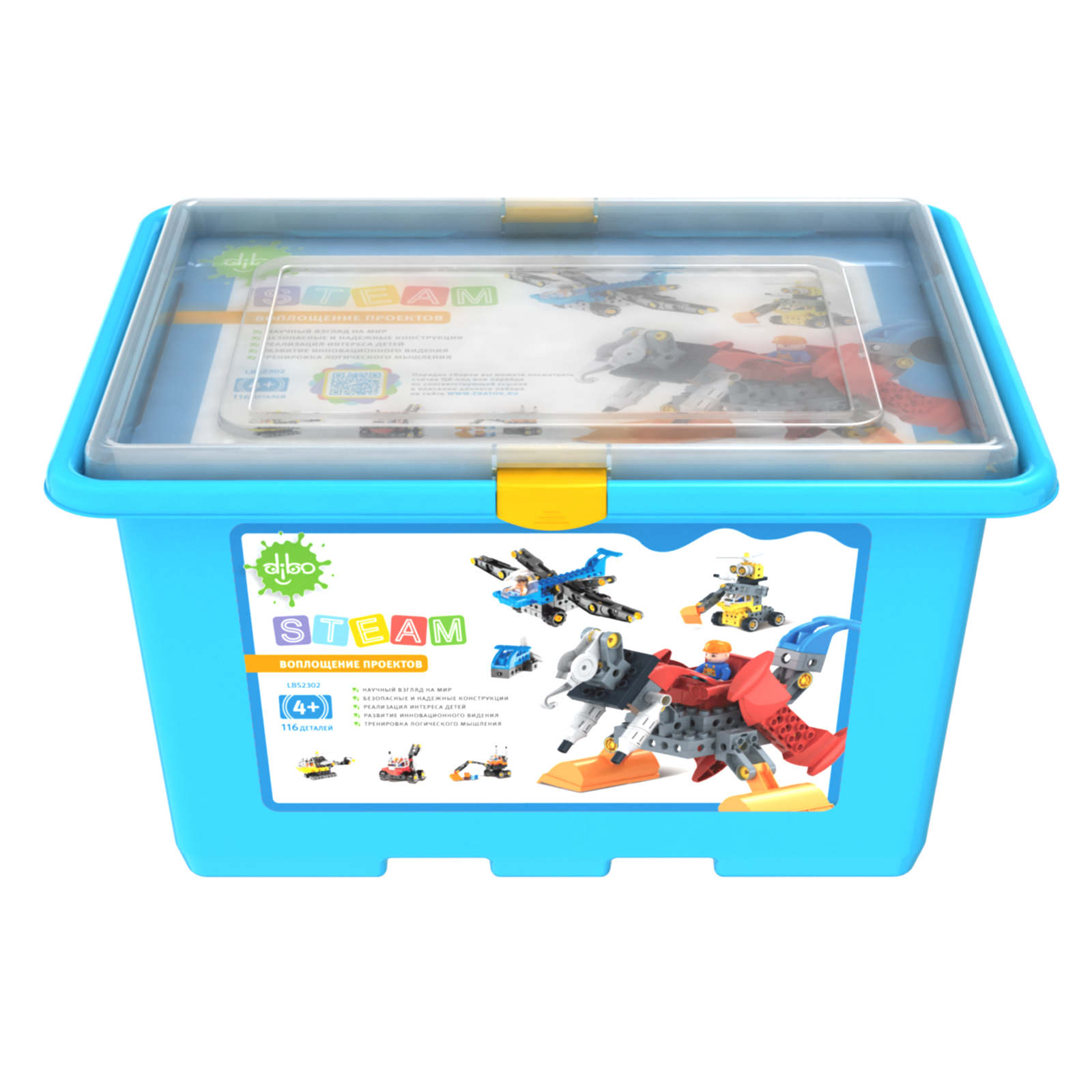 DIBO - конструктор высокого качества, изготовлен из абсолютно безопасного пластика. Детали расположены в удобном контейнере для хранения, с плотно закрывающейся крышкой. Наборы DIBO полностью совместимы между собой, порядок сборки моделей можно посмотреть не только в красочной инструкции, но и считав QR-код на упаковке.