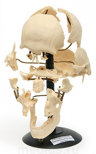 Модель «Кости черепа человека, смонтированные на одной подставке» выпускается как демонстрационный материал при изучении строения черепа человека в средних и высших образовательных учреждениях.