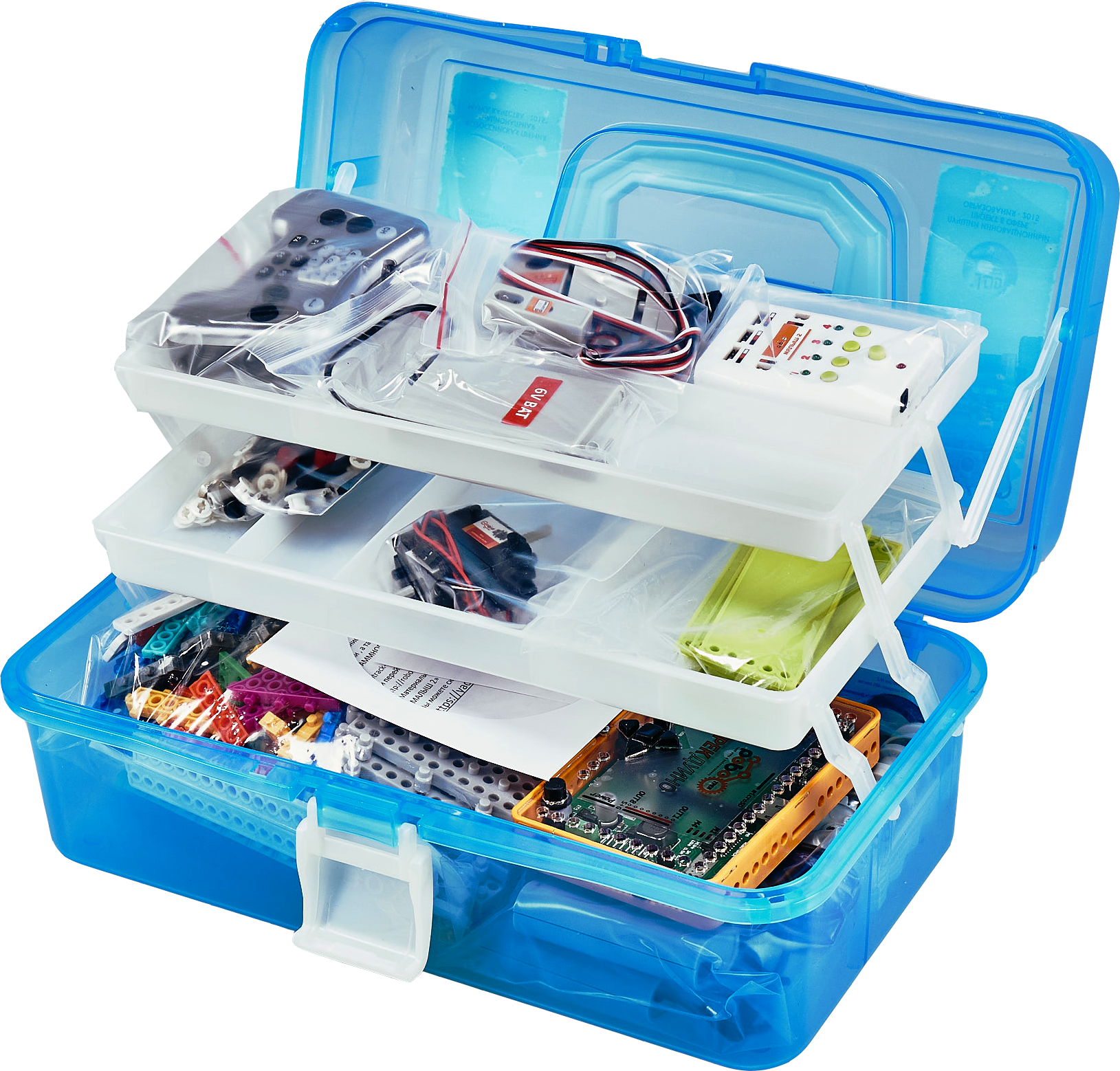 Дополнительно к конструктору можно поставляется электронный комплекс «Основы робототехники и электронно-механического моделирования». С его помощью ребенок сможет каждое занятие создавать нового робота.