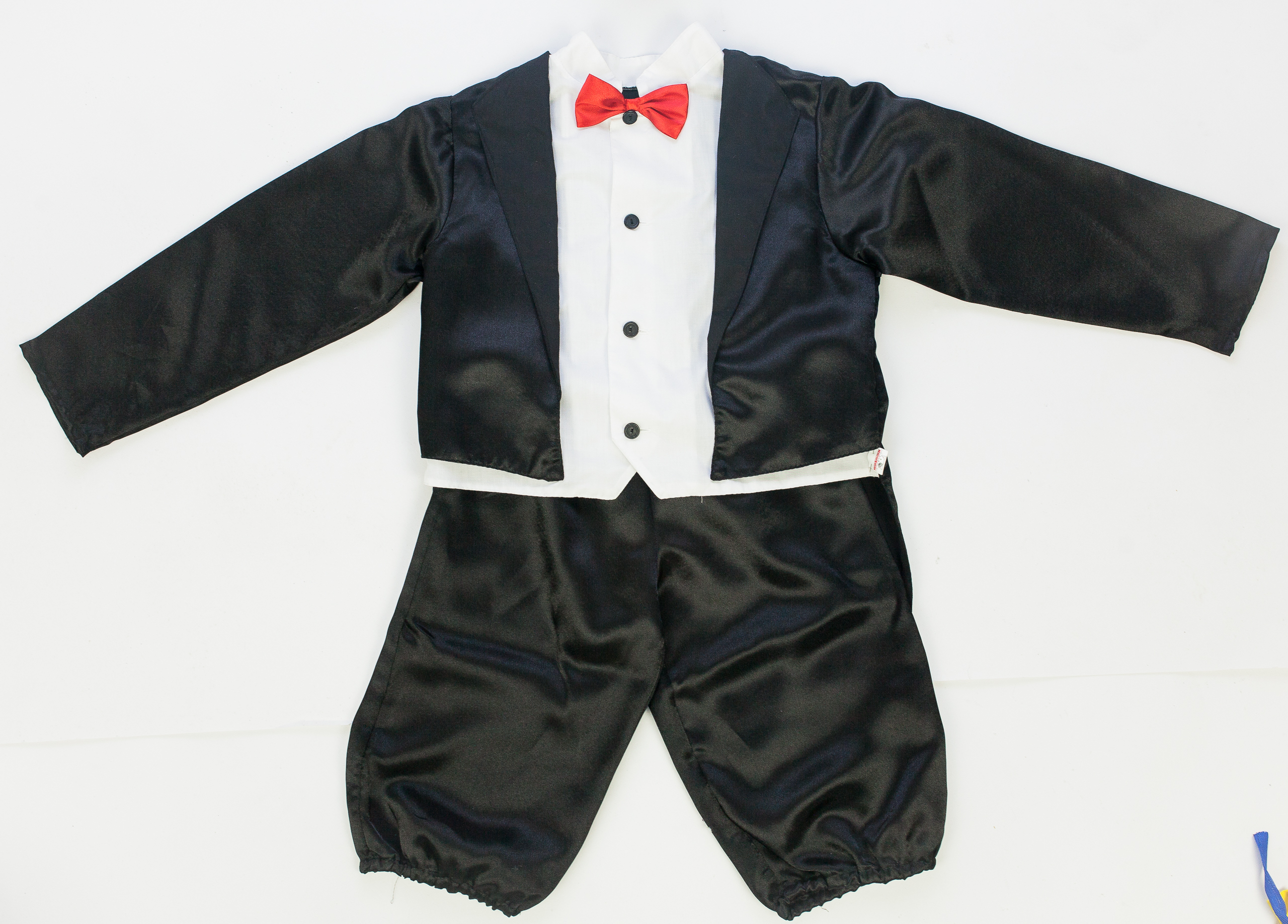 Комплектация: фрак с имитацией рубашки и галстуком бабочкой, бриджи.