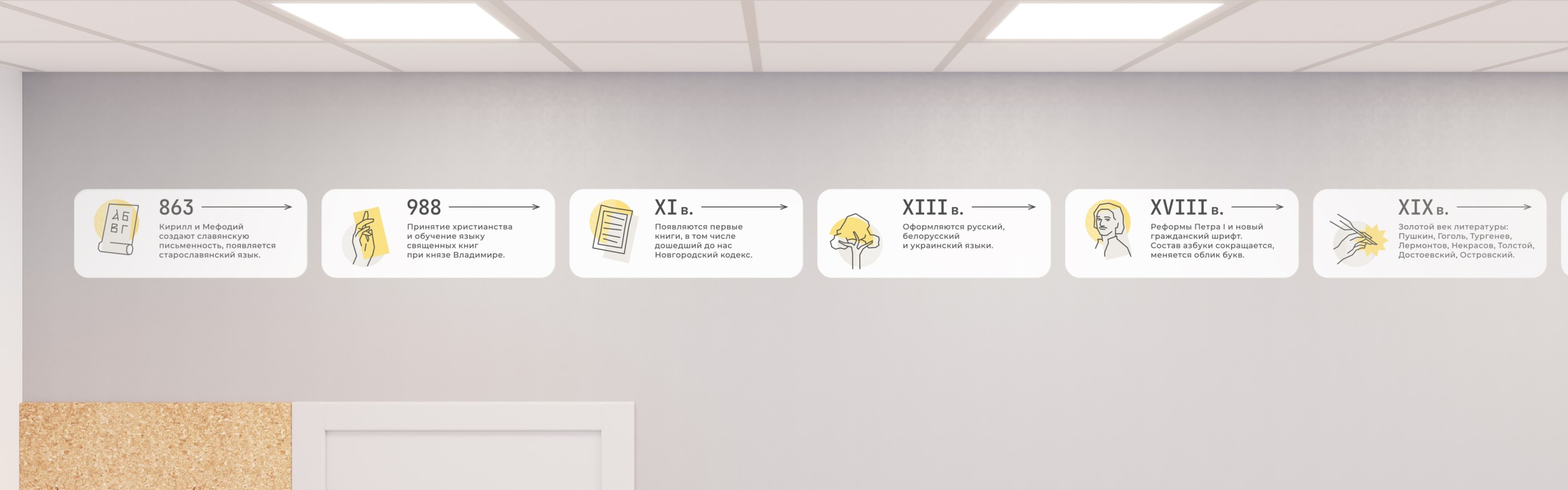 Как создать в учебном классе образовательное пространство, не перегружая стены лишней информацией? Воспользуйтесь готовым решением в виде ленты событий с датами и графичными иконками, которые поддерживают текст.