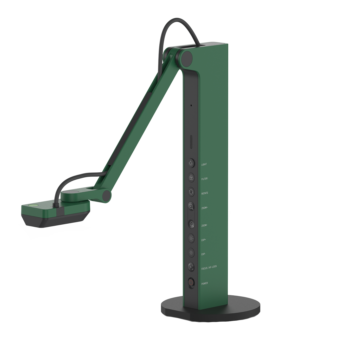 Документ-камера предназначена для трансляции изображения и звука в режиме реального времени. Может использоваться для показа документов, демонстрации опытов, а также в качестве веб-камеры. Может транслировать изображение напрямую на проектор, ТВ или сенсорную панель без участия ПК. Поддерживаемые ОС: Windows, Linux, macOS, iOS, Android, Chrome. Два режима подключения – USB и HDMI. Камера 8 MP Sony CMOS. Рабочая область – 344 × 460 мм (4:3), 270 × 480 мм (16:9). Разрешение камеры до 3264 × 2448 (режим USB), 1920 × 1080 (режим HDMI). Частота до 30 кадров в сек. Программное 20-кратное увеличение. Возможность использования с микроскопом. Встроенная LED-подсветка. Встроенный микрофон (режим USB). Кнопки управления на корпусе. Регулируемая стойка. Интерфейс питания: USB (кабель 1,5 м USB-C - USB-A). Размеры в сложенном виде с основанием: 116 × 108 × 301 мм. Вес: 1 кг. Электропитание: 5 V 500 mA.