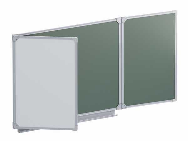 Это настенная модель, которая не занимает много места в аудитории. При этом она предоставляет учителю и ученикам большую площадку для письма. Решение приобрести доску на три секции выгодно и по другим причинам: