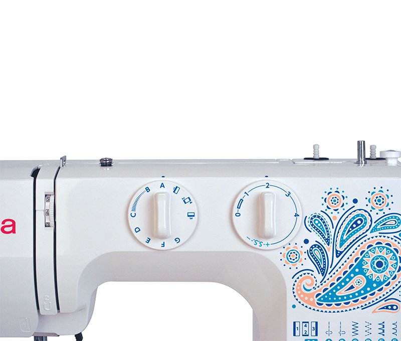 • Регуляторы натяжения верхней нити, давления лапки, позиционирования иглы и баланса петли;