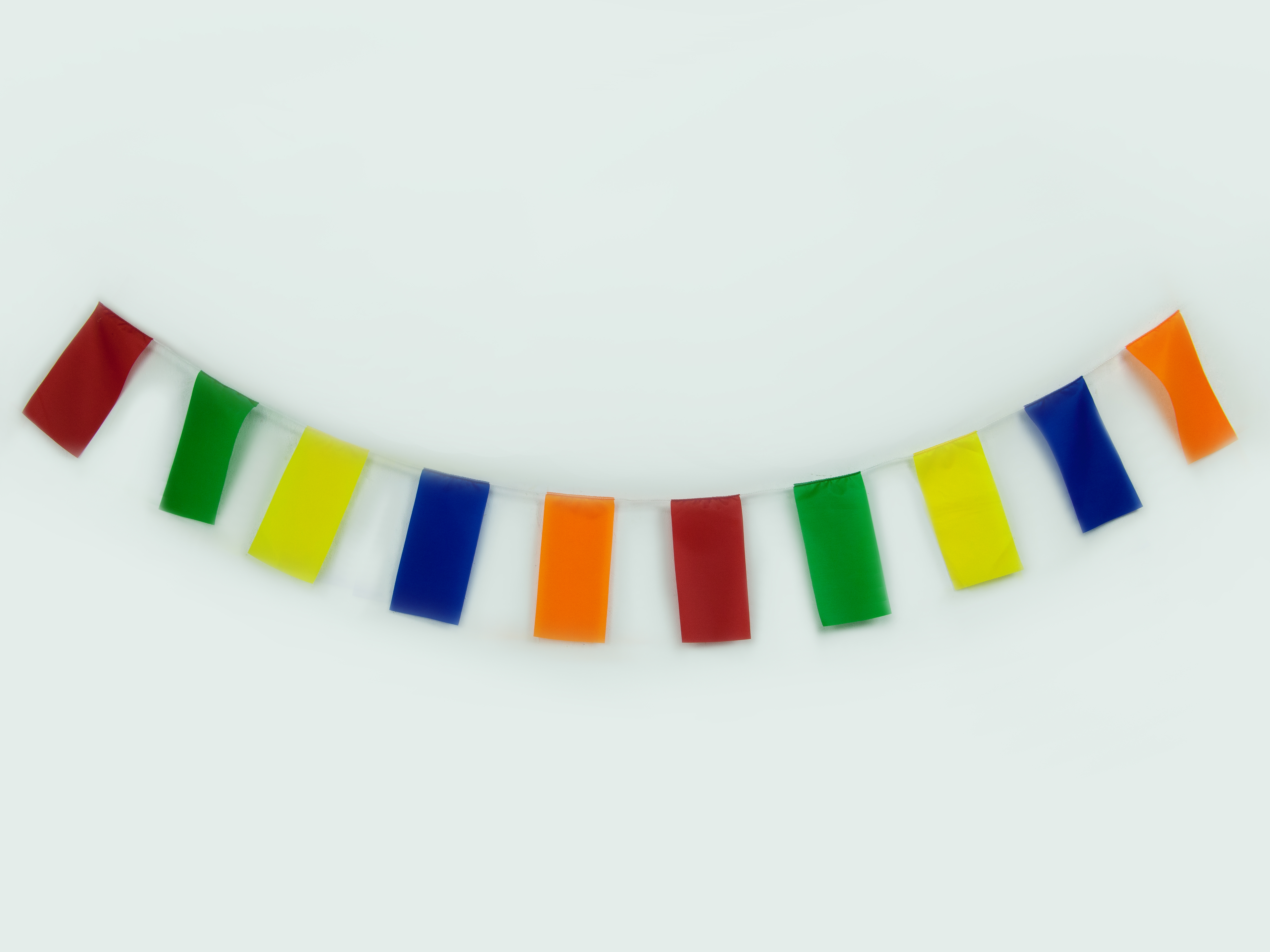 Флажная лента — это ряд прямоугольных разноцветных флажков (5 цветов – синий, красный, желтый, зеленый, оранжевый), пришитых к шнуру. 40 см шнура   с каждой стороны – завязки.