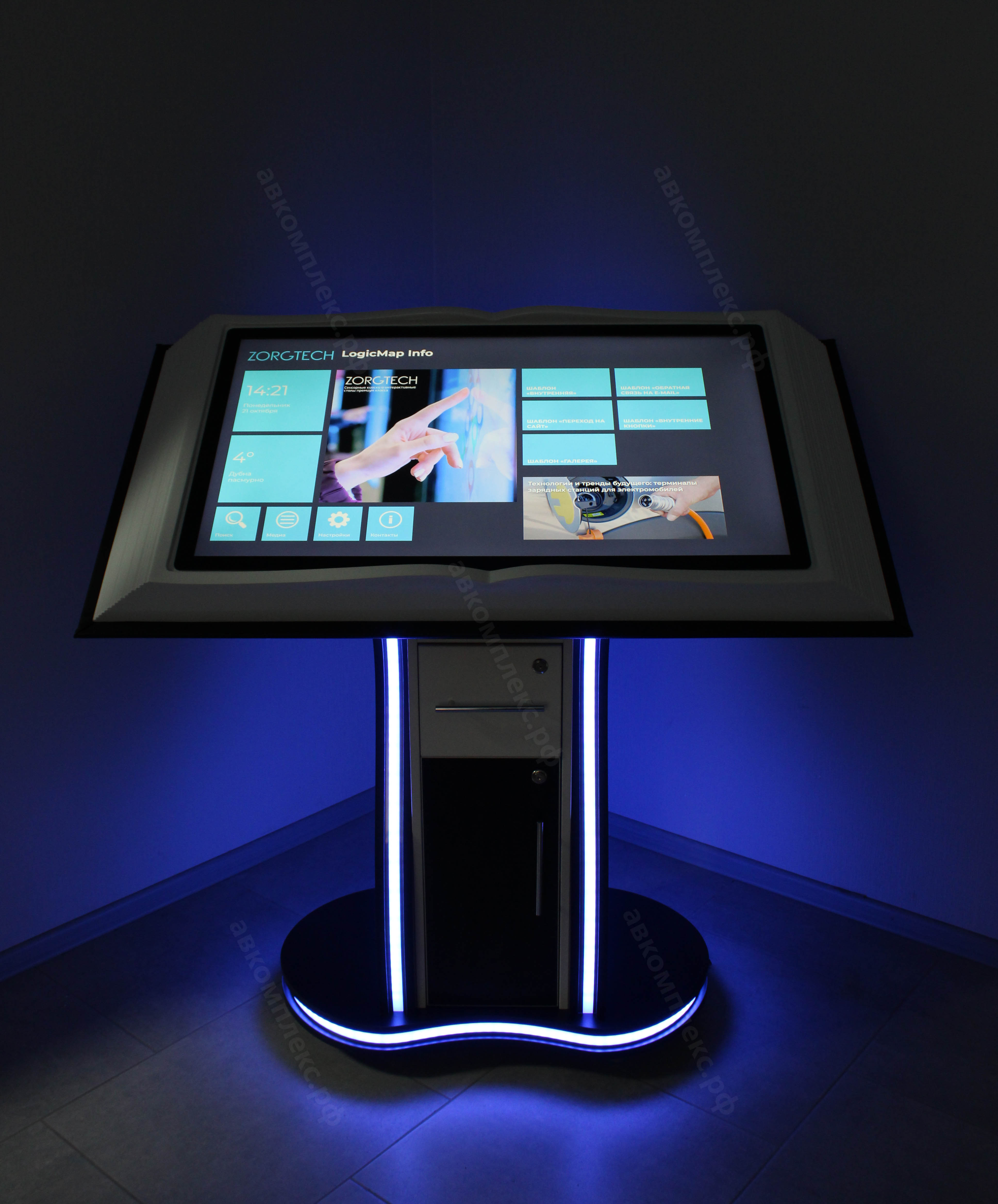 Инструментом для рекламы или демонстрации объектов в трехмерном пространстве выступает напольная 3D-пирамида «AVKompleks» с тремя проекциями, отличие которой заключается в том, что проецируемый контент просматривается с трех сторон не используя специальные очки. Это оборудование выступает как креативное решение для отображения реалистичной анимации на выставочных и презентационных мероприятиях, форумах, в магазинах, развлекательных или бизнес-центрах, автомобильных салонах, музеях. Принцип работы голографической пирамиды, расположенной на тумбе, заключается в транслировании с помощью высококонтрастной матрицы на стеклянной панели устройства зацикленного видеоряда в трех плоскостях.