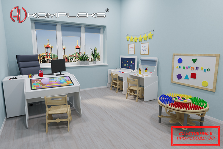Наш кабинет психолога создан с заботой о вас и ваших детях. В нем объединены комфорт и инновации. Здесь каждый элемент продуман до мелочей, чтобы обеспечить максимально эффективную терапию: Сортер «AVKompleks ЭКО» – развивающая деревянная игрушка, с помощью которой ребенок учится проводить анализ и запоминать, логически мыслить, улучшать координацию движений и мелкую моторику. «AVKompleks Шумотрон» – шумовой набор, который помогает развивать навыки слухового восприятия, творческие и интеллектуальные способности, улучшает память. Интерактивный стол «AVKompleks ПсихоЛогика UNI» - профессиональное оборудование, с помощью которого психолог может сделать процесс терапии более увлекательным и наглядным. Стеллаж мебельный – удобное место для хранения книг, игрушек и других материалов. Детский стол и стульчики – специально оборудованное пространство для малышей, где они смогут комфортно участвовать в коррекционных занятиях. Наш кабинет – это не просто место для сеансов, это пространство, где каждый найдет поддержку и внимание, необходимые для личностного роста и преодоления трудностей. Добро пожаловать в наш уютный и современный кабинет психолога!