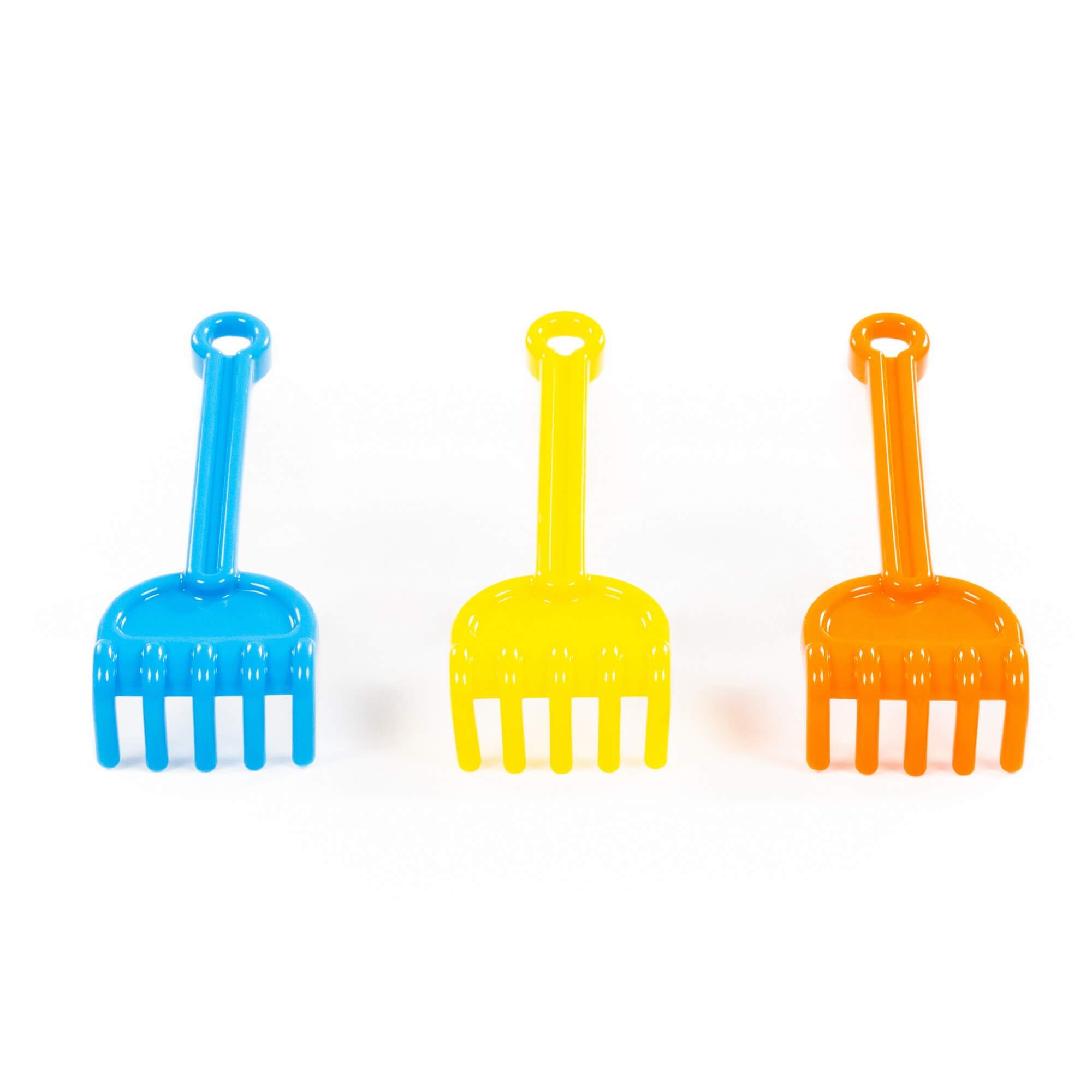Игрушка детская из полимерных материалов. Назначение: игрушка предназначена для детей от 3-х лет и старше (возрастная адресованность согласно информации о маркировке). Грабельки изготовлены из прочного, высококачественного пластика, окрашенного с помощью нетоксичных пищевых красителей. У грабелек комфортная для малышей прямоугольная ручка с петелькой-колечком на конце, и зубчики с безопасными закругленными краями. Благодаря крупным зубчикам грабельки замечательно разрыхляют и влажный, и сухой песок, и отделяют его от инородных предметов. Размер: 209х74х32 мм