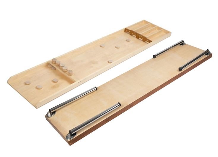 Игра, известная нам под названием «Жульбак», является голландской разновидностью британской игры Шаффлборд. Свой современный вид «Жульбак» приобрел в Голландии в XVIII веке. В нее играли киями, пытаясь закатить шайбы в лузы на деревянной доске. В Германии ее стали называть «Джакколо», в Англии – «Датский Шаффборд". Сейчас "Джакколо - Жульбак" стал на столько популярен по всему миру, что по нему проводятся соревнования и турниры. Цель игры — забить 30 деревянных шайб в лузы и набрать наибольшее количество очков. Правила игры : Количество игроков не ограниченно. Играют по очереди, каждому игроку дается 3 попытки забить все 30 шайб в лузы. Каждая луза дает разное количество очков слева направо : первая – 2 очка, вторая – 3 очка, третья -4 очка, четвёртая – 1 очко. Если с первой попытки забиты не все шайбы, то отскочившие шайбы перебрасываются. Если в ходе попытки игрок смог забить в каждую из луз по шайбе, то победные очки за каждый такой комплект удваиваются. Пример подсчета очков при условии, что в каждой лузе есть по 1 шайбе: (2+3+4+1) *2=20 очков. Соответственно, если игроку удалось забить в каждую лузу по 3 шайбы, ему начисляется 3*20=60 победных очков. В конце каждой попытки шайбы в лузах складываются в стопку так, чтобы они не мешали залетать в лузу другим шайбам. Если все шайбы забиты с первой попытки, игрок получает для броска две дополнительные шайбы Если все шайбы забиты со второй попытки, игрок получает для броска одну дополнительную шайбу Комплектация : игровое поле (борта из сосны) - 1 шт, ноги металлические складные (высота от 71 до 73 см)- 4 шт, фишки дуб без лака- 30 шт Размеры : общие 200х44х6 см, игровое поле 198х39.5 см Материалы : массив дерева, фанера, металл, пластик, покрытие - акриловый лак