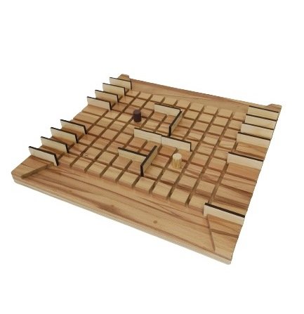 Играют двое, ходят по очереди. За 1 ход можно поместить свою фишку или поставить на поле 1 перегородку. Если игрок использовал все перегородки, он продолжает играть только фишкой, которую можно передвигать на 1 клетку, но не может «перепрыгнуть» через перегородку. Перегородка ставится так, чтобы закрыть ровно 2 клетки - она может облегчить путь, либо преградить сопернику, но всегда нужно оставить сопернику выход к финишной линии. Комплектация : игровое поле -1 шт, фишки -2 шт, перегородки -20 штМатериалы : массив дерева, фанера, покрытие - морилка, акриловый лак