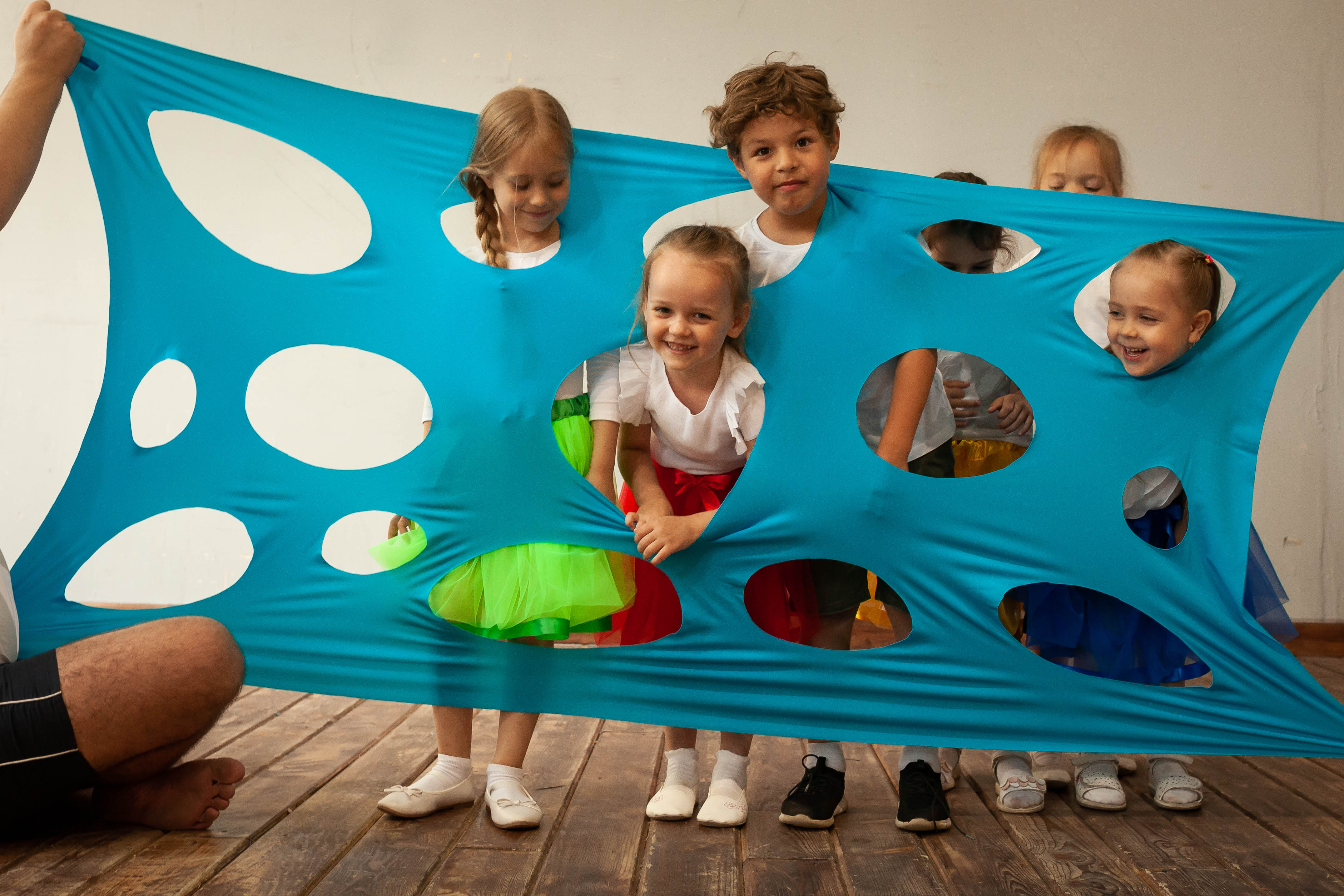 Веселая игра и сенсорное развитие идут вместе, так как детям нужно соотнести размер дырки с собой и понять, куда можно пролезть, а куда можно просунуть руку.
