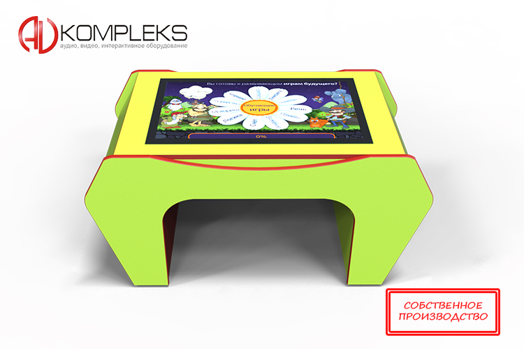 В детсадах, школах, группах развития, детских образовательных центрах и других учебных заведениях стали обретать популярность детские обучающие комплексы. К таким относится интерактивный развивающий стол «AVKompleks Мulti 5» производства компании «АВ Комплекс». Мы гарантируем поставки товара в срок во все регионы Российской Федерации. Этот простое в использовании устройство идеально подходит для работы как с одним ребенком, так и с группой. Это обусловлено наличием технологии Multi Touch, которая поддерживает до 10 одновременных касаний. Кроме того, мультимедийный комплекс состоит из персонального компьютера модели Intel Core i3, твердотельного накопителя SSD, видеокарты Intel HD Graphics, сенсорного планшета на 27-32 дюйма, акустики с мощностью 10 Вт. Для привлечения интереса детей в комплект входит множество интерактивных развлекательно-обучающих программ, за счет, которых занятия проходят увлекательно и в игровой форме. Также имеется кабели HDMI, Usb 2.0, беспроводная клавиатура и сетевой фильтр.