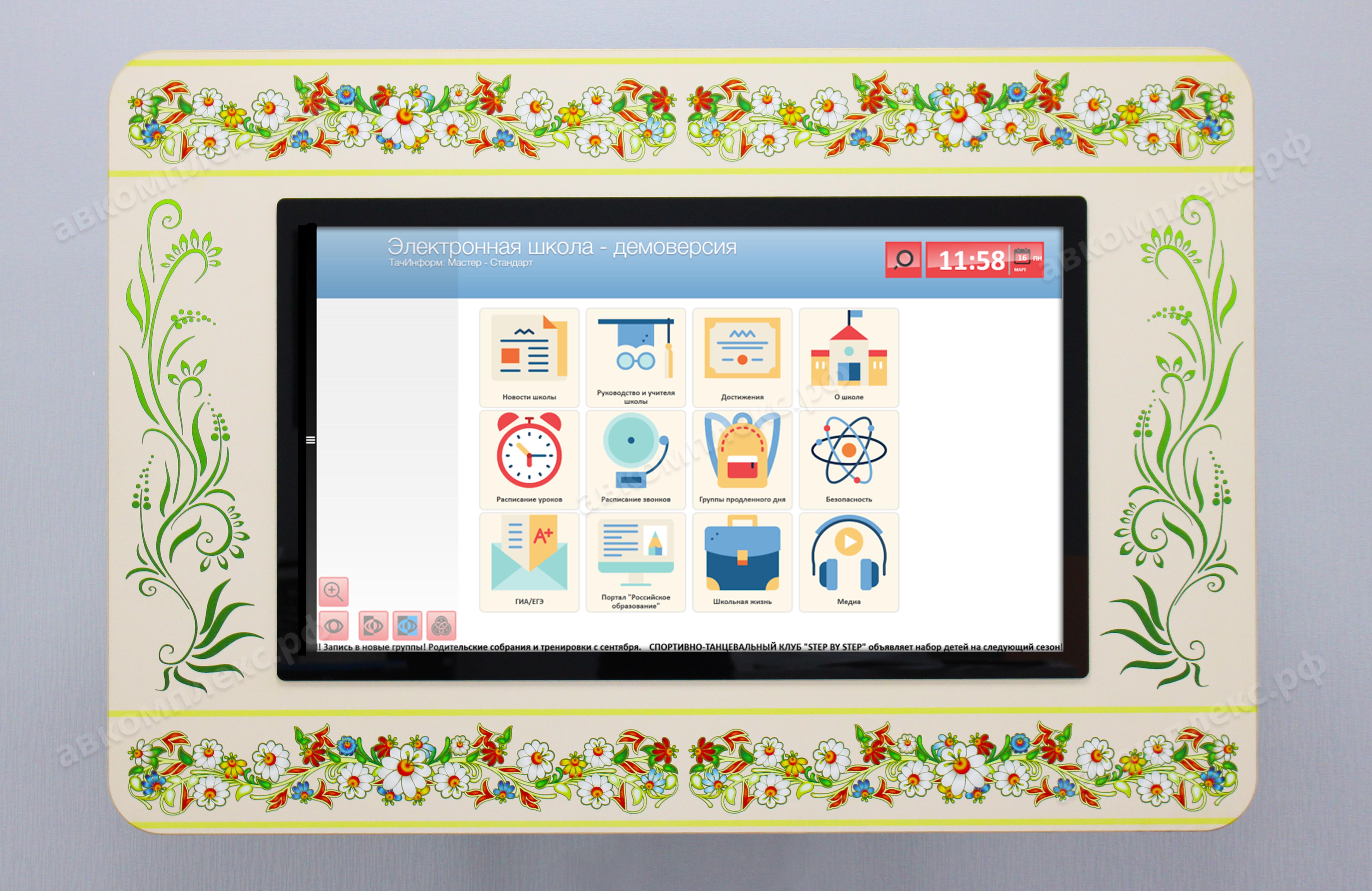 Компания «АВ Комплекс» выполняет производство собственных интерактивных визитных карточек "AVKompleks" для учебных учреждений. Продукция представляет собой сенсорный монитор, выводящий полезный информационный контент. Это могут быть тексты, фотографии, видеофайлы, презентации. С помощью такого оборудования информируйте посетителей о любой деятельности вашего образовательного заведения, рассказывайте об актуальных новостях, загружайте документы разного формата, создавайте галереи мультимедийных файлов и слайд-шоу. Интерактивная визитная карточка выполнена из ламинированной ДСП любого цвета. Экран устройства – сенсорный с диагональю 43", 55" дюймов (на выбор) и разрешением 1920х1080 px. Поддерживает технологию мультитач до 10 одновременных касаний.