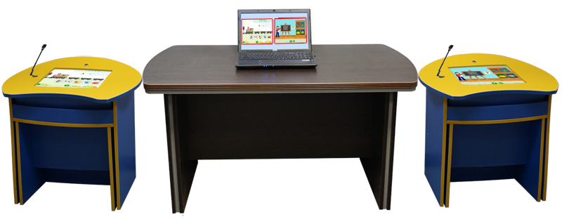 За каждой интерактивной партой могут комфортно разместиться для занятий до трех учеников. Таким образом, логопедический стол - комплекс «Антошка - 2» дает возможность втрое увеличить состав группы обучающихся по сравнению с обычными логопедическими столами.