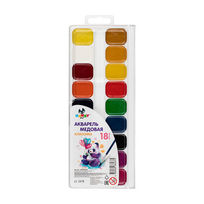 Акварельные медовые полусухие краски в пластмассовой упаковке с прозрачной крышкой .Используются для детского творчества, а также для художественных, оформительских и декоративно-прикладных работ.Акварель обладает следующими потребительскими свойствами:·чистые, яркие цвета ·прозрачность ·хорошая размываемость и разносимость ·легкая наполняемость кисти ·краски смешиваются между собой, сохраняя насыщенность цвета ·абсолютно безвредны, соответствуют международным стандартам безопасности ·срок годности не ограничен.