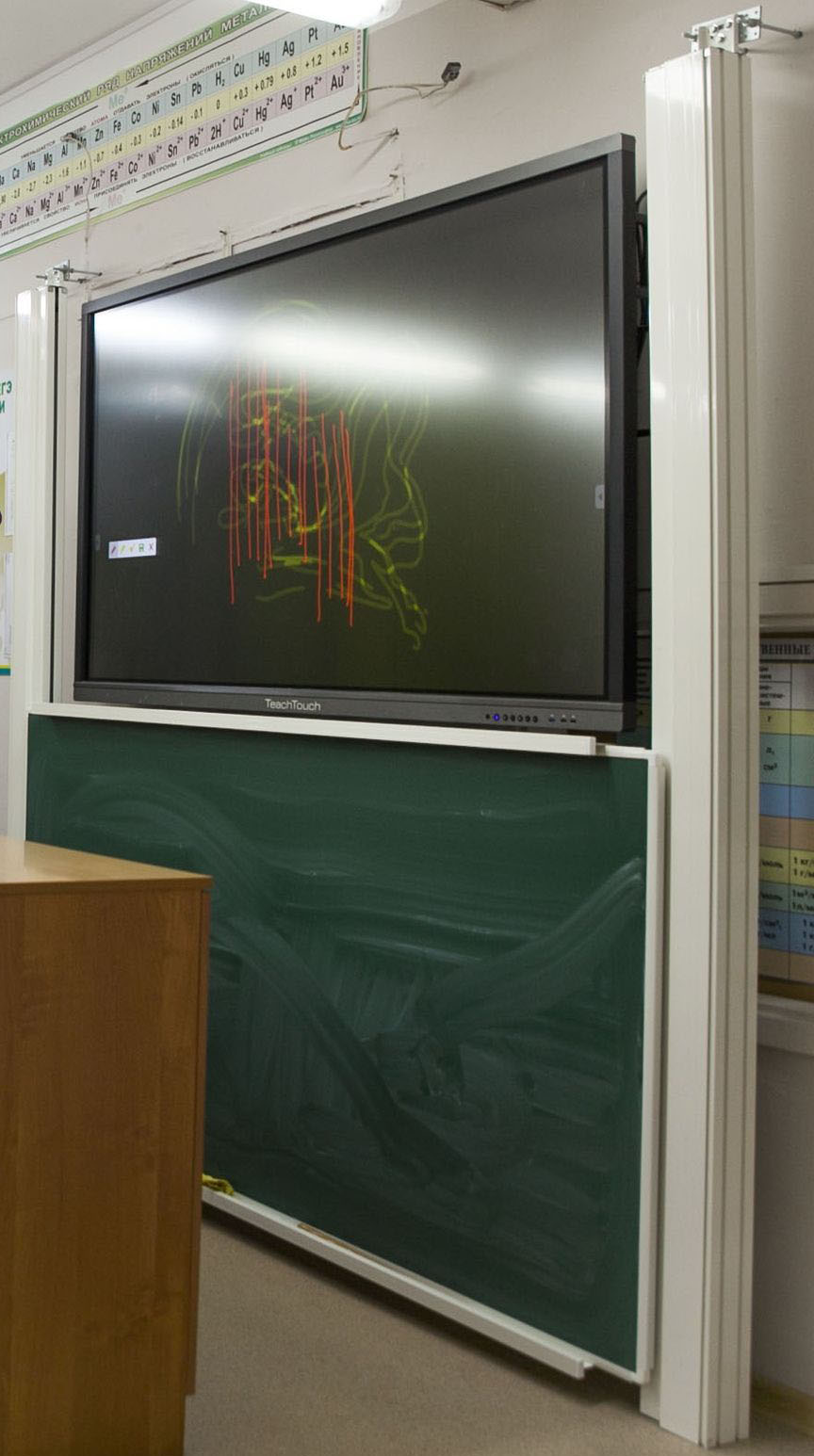 - Особое удобство возникает для преподавателей, за счет того, что они могут переходить с демонстраций материала на учебной доске на работу на интерактивной ЖК-панели не сходя с места.