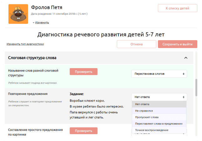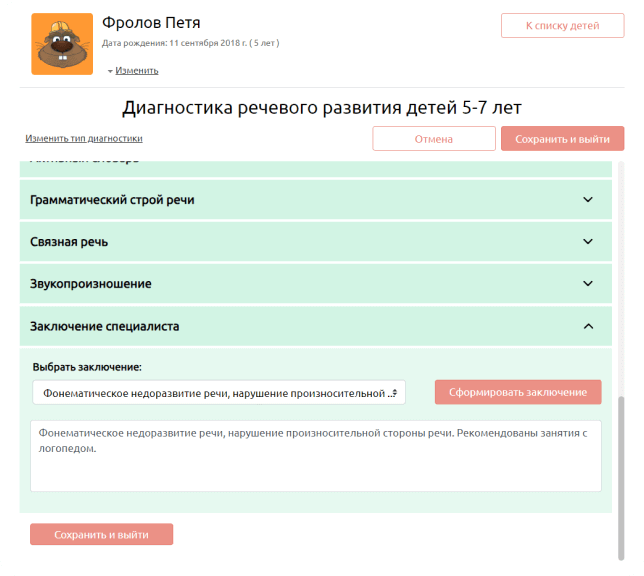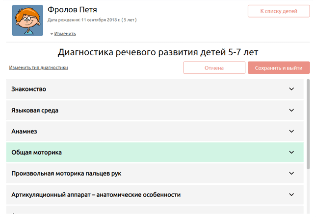 Программа для обследования речевого статуса дошкольника. Поможет специалистам провести полноценное обследование детей от 3 до 7 лет,  подготовить заключение. Содержит интерактивный опросник, игры и упражнения для проведения обследования.