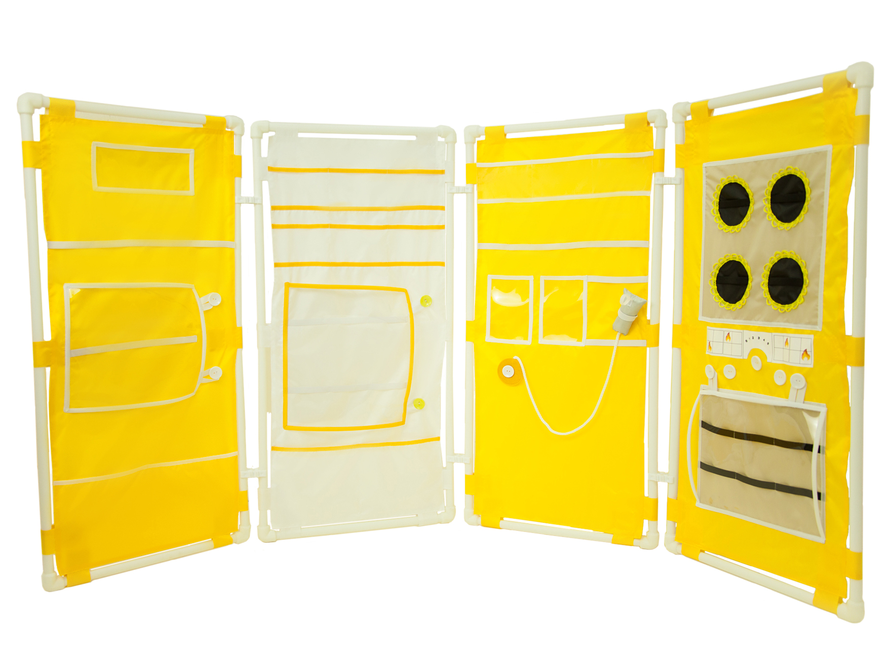 1. 4 накидки, каждая пристегивается к ширме с помощью липучек, нашитых на ткань.