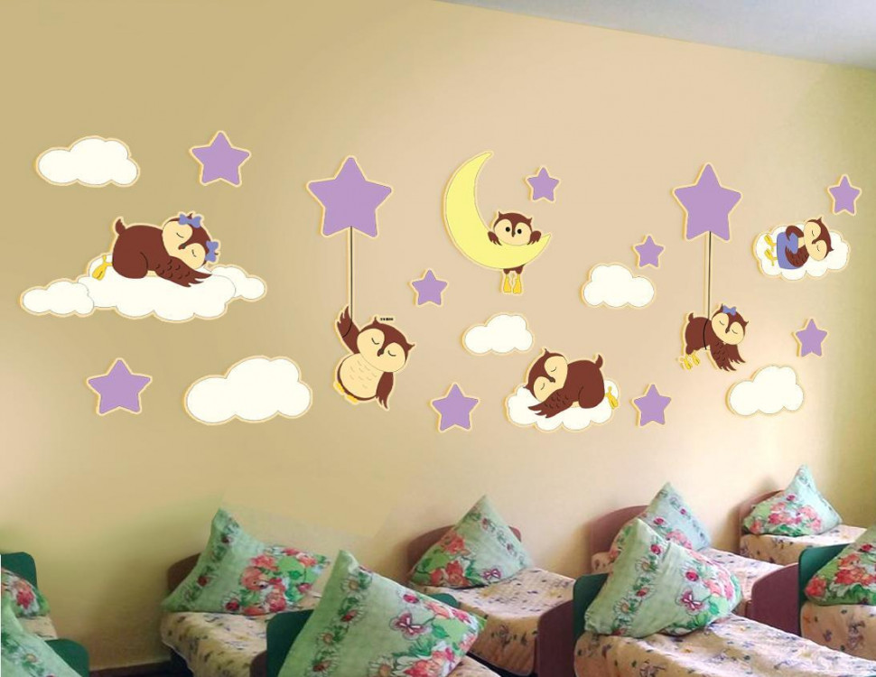 Комплектация: совята 6 шт, тучки 5 шт, звездочки 11 штМатериал : фанера, МДФ Размер : 6х2 м