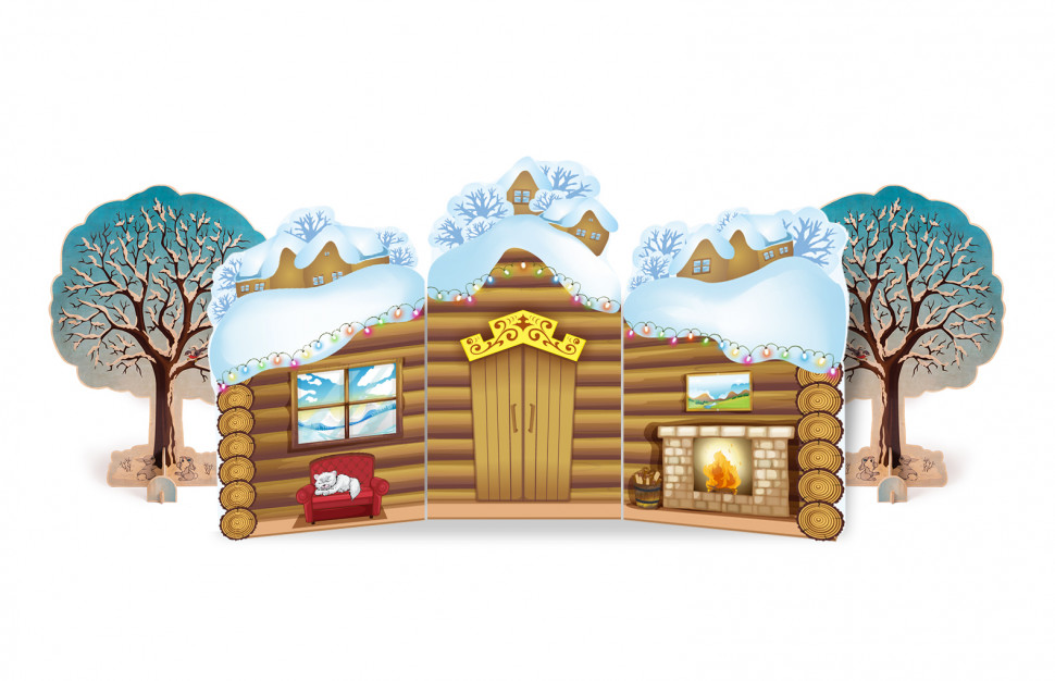 Комплект декораций "Домик у леса" позволит оперативно менять сезоны. Деревья двусторонние - зима / осень. Дом с открывающейся дверью всесезонный и показан как снаружи так и внутри. Корзина в доме со сменными магнитными элементами, куда в зависимости от сюжета крепятся либо цветы, либо овощи. Комплектация : дом-ширма - 1 шт, деревья - 2 шт, набор магнитных элементов. Размер : дом 310х170 см, дерево 90х120 см Материалы : фанера 6мм, фанера 3 мм, полимерная пленка.