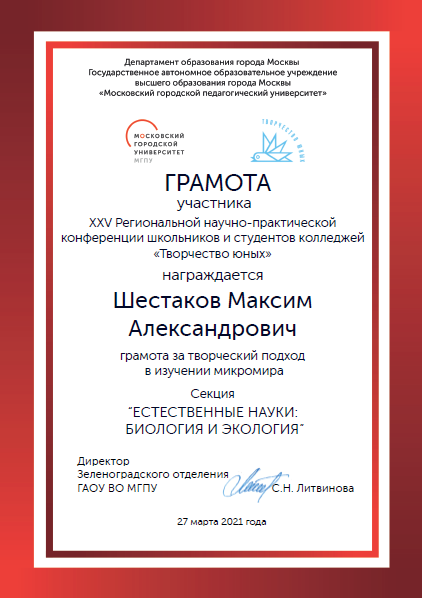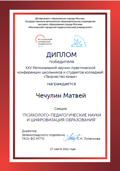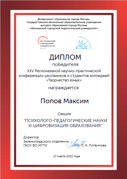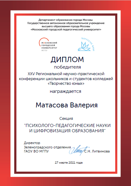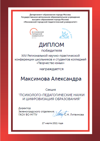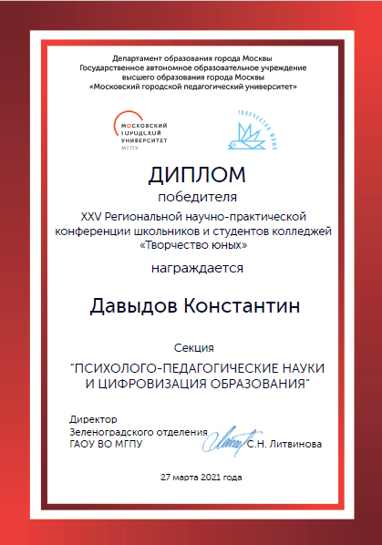 участник проекта «КРЕАТИВ-ПАРК» Научного Центра Российской академии образования на базе Российского государственного профессионально-педагогического университета.