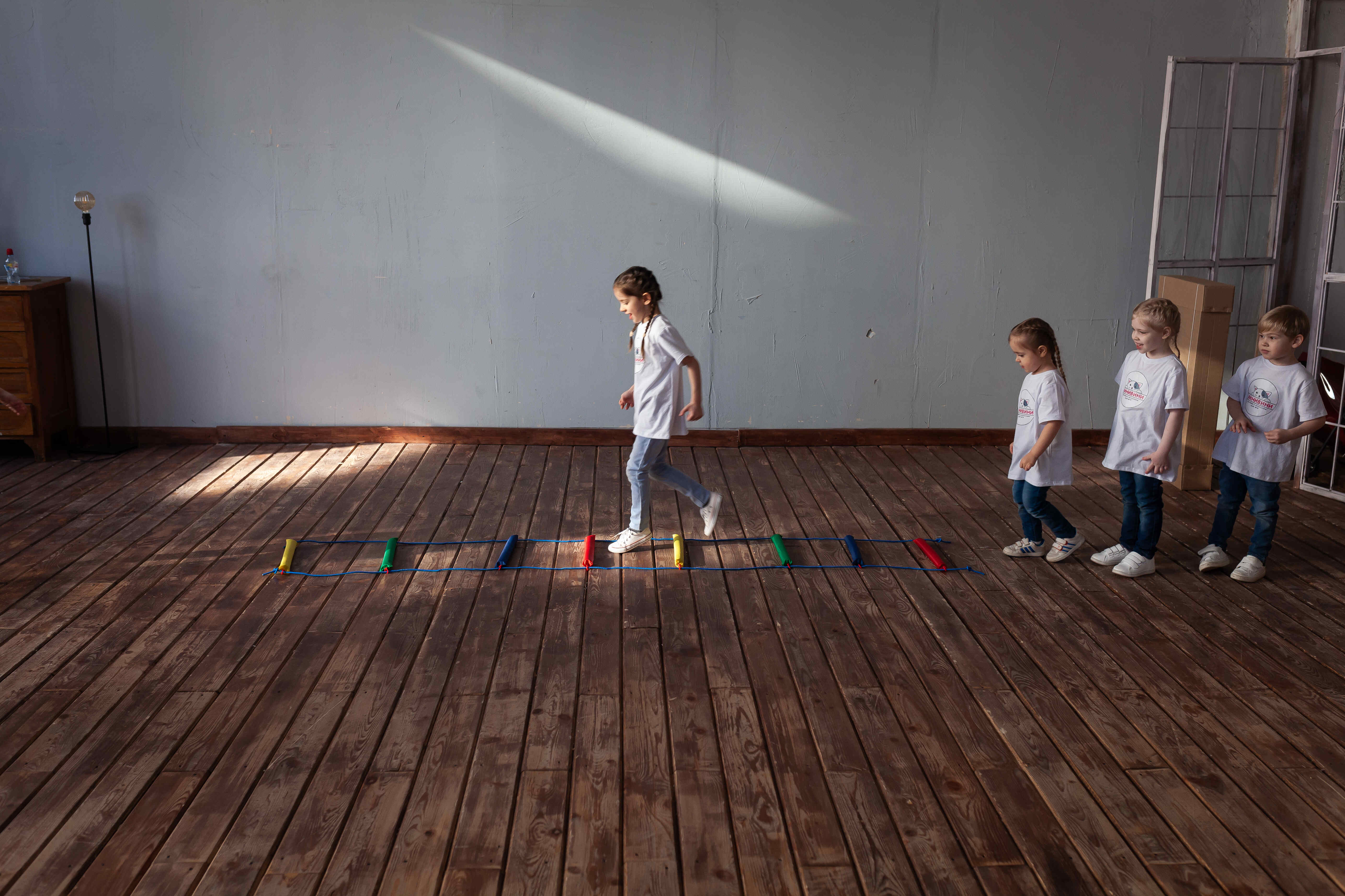 Хороший эффект дают соревновательные упражнения. Две лестницы размещаются параллельно друг другу на спортивной площадке и дети парами выполняют различные упражнения, соревнуясь между собой.