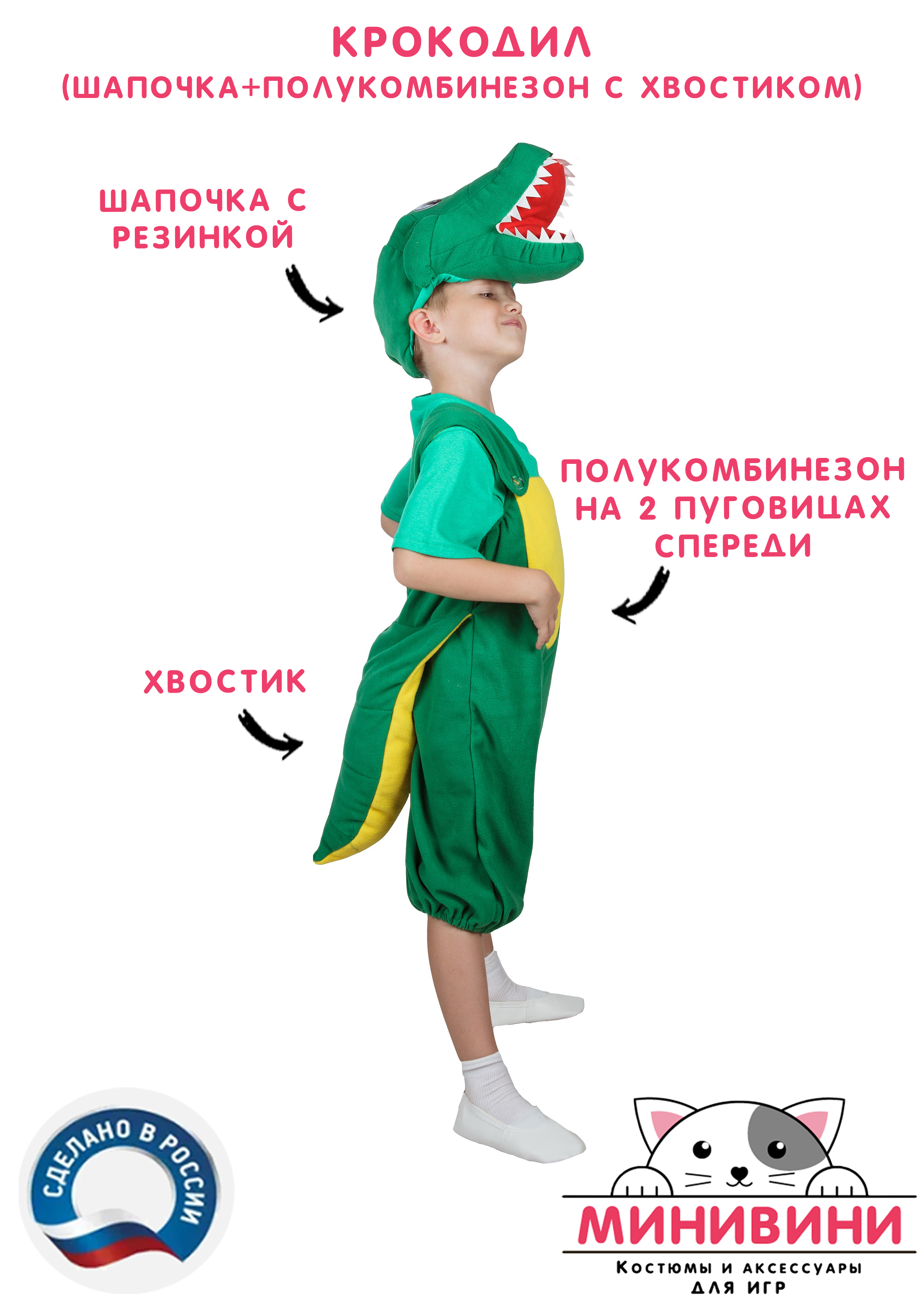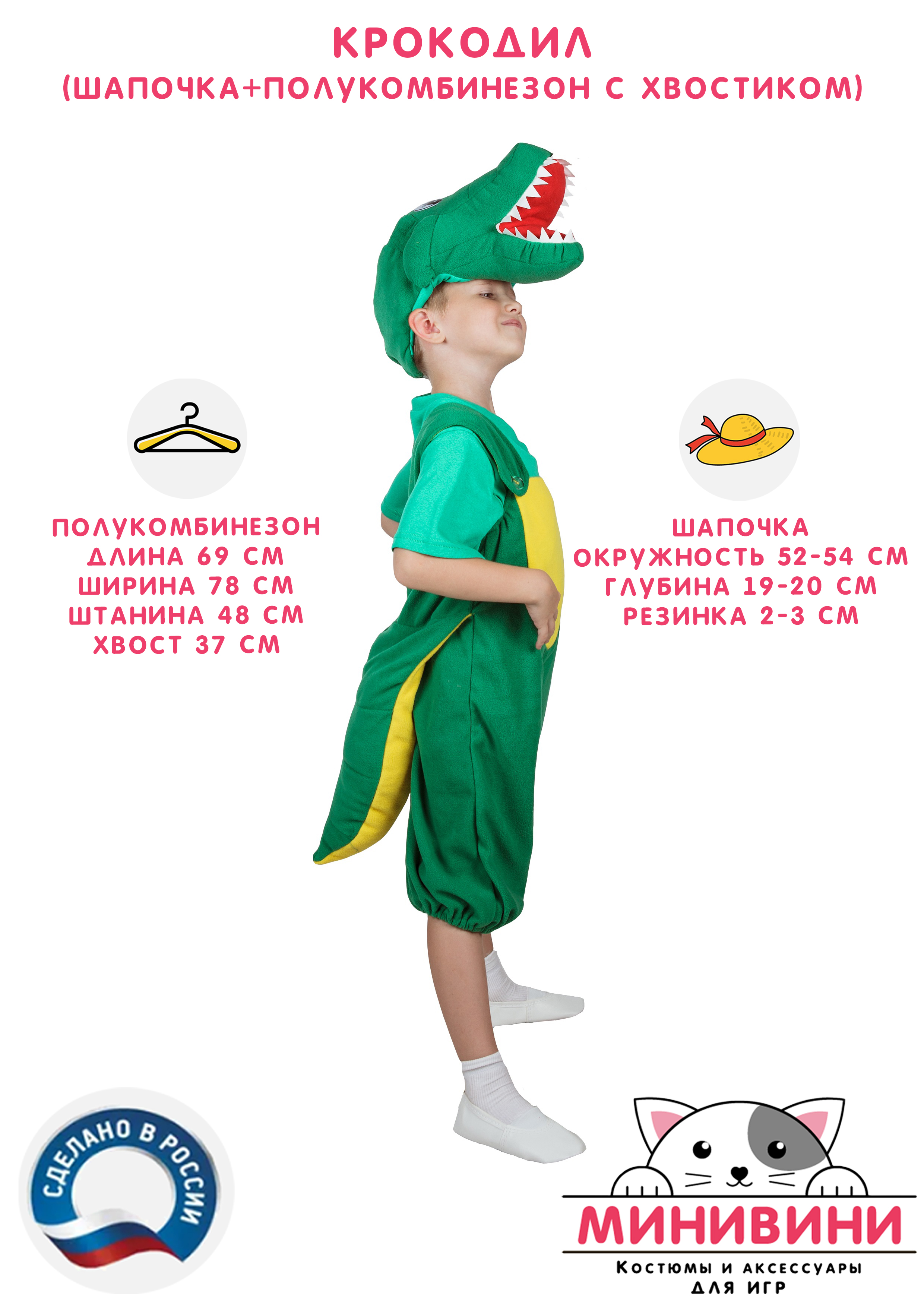 Характеристики Крокодил (шапочка + полукомбинезон с хвостиком)