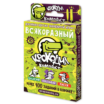 Игру "Крокодил" в нашей стране знают почти все. Даже те, кто её не знает, играют в неё с иностранцами во время турпоездок. Правила очень просты: нужно объяснять слова так, чтобы вас поняли. "Крокодил ВсякоРазный" – это компактная версия игры, в которой вам нужно объяснять, рисовать и показывать жестами разные слова.