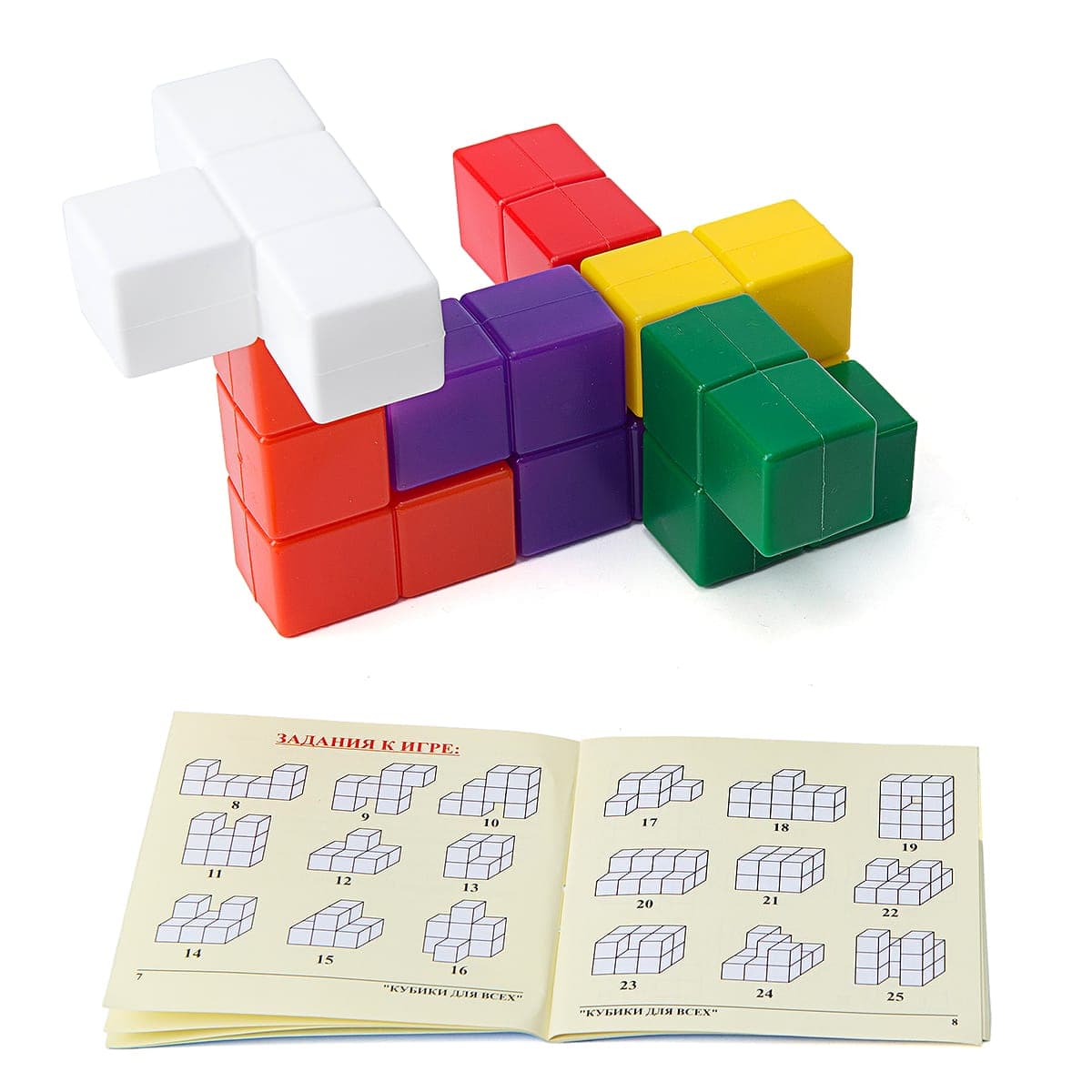 В состав  игры входят 27 отдельных кубиков, соединённых между собой определенным образом, в результате чего получаются фигуры разной конфигурации.Самое сложное соединекние отдельных кубиков в игре "Загадка" - состоит из семи неправильных (отличных от параллелепипедов) трёхмерных фигур, составленных из трёх или четырёх одинаковых кубиков, соединнёх гранями. Из набора фигур можно сложить огромное количество красивых построек, а самая главная задача игры: сложить куб 3х3х3 разными способами. Построение заданных и создание новых фигур развивают внимание, память (особенно зрительную), комбинаторные способности, пространственное представление и воображение, логическое мышление, смекалку и сообразительность. Игры интересны ребёнку тем, что он, неожиданно для себя, создаёт конструкцию, автором которой и является. Из элементов разной конфигурации можно составлять модели, как на плоскости, так и в объёме.