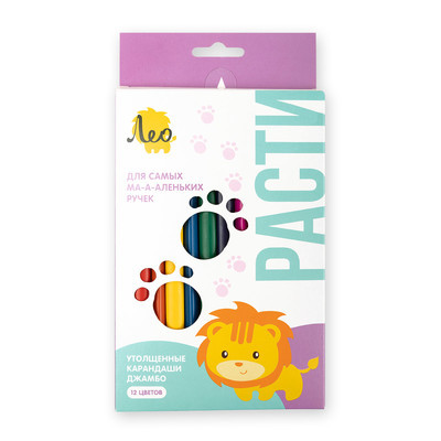 Набор цветных трехгранных карандашей Джамбо ТМ «Лео» серии "Расти" арт. LSTJ-12 заточенные.12 цветов в наборе: желтый, оранжевый, светло-розовый, красный, бордовый, голубой, синий, фиолетовый, желто-зеленый, зеленый, коричневый, черный.Карандаши Джамбо серии «Расти» – это:- трехгранная форма, которая идеально подходит для маленьких детских ручек, вырабатывается правильный захват пишущего инструмента;- предназначены для самых юных художников;- большие удобные карандаши, утолщенный корпус 10 мм;- диаметр стержня – 5 мм;- стандартная длина карандаша – 177 мм;- яркие и насыщенные цвета даже при самой слабой степени нажатия;- мягкая заточка благодаря качественной хорошо просушенной древесине мелколистной липы;- специальная система склейки против ломкости грифеля;- безопасное использование, карандаши не содержат азокрасителей, фталатов и тяжелых металлов вредных для здоровья человека и окружающей среды; - привлекательный дизайн набора с львенком.Упаковка: картонная коробка с европодвесом- диаметр 10.0 мм., - толщина стержня 5 мм.,- длина 177 мм.
