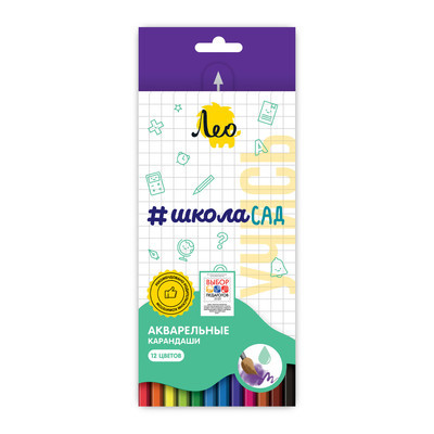 Набор акварельных шестигранных карандашей ТМ «Лео» "Учись" арт. LSWP-12 заточенные, окраска корпуса в цвет стержня.12 цветов в наборе: желтый, оранжевый, красный, кармин, красное вино, фиолетовый, голубой, синий, светло-зеленый, зеленый, коричневый, черный.Изготовлены из сырья и материалов природного происхождения и качественной химически необработанной древесины мелколистной липы, выращенной в экологически чистых районах России. Особая технология вклеивания стержня обеспечивает ударопрочность карандашей. Легко затачиваются. Товар сертифицирован для детей от 3-х лет.Карандаши «Лео» серии "Учись" – это не только стандартные цветные наборы, но и акварельные карандаши. Они совмещают в себе преимущества цветных карандашей и акварельных красок, легко размываются водой и смешиваются между собой, образовывая новые чистые оттенки. Можно нарисовать рисунок на сухой бумаге, а затем размыть его водой, а можно сразу использовать влажную бумагу. Цвета яркие, насыщенные даже при слабом нажатии. Карандаши представлены в наборах по 6, 12, 18 и 24 цвета.Форма корпуса карандаша: шестигранныйДлина карандаша: 177 ммДиаметр сечения корпуса: 7 ммДиаметр стержня: 3 ммУпаковка: картонная коробка с европодвесом