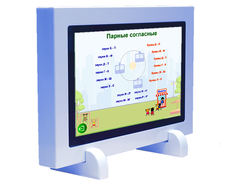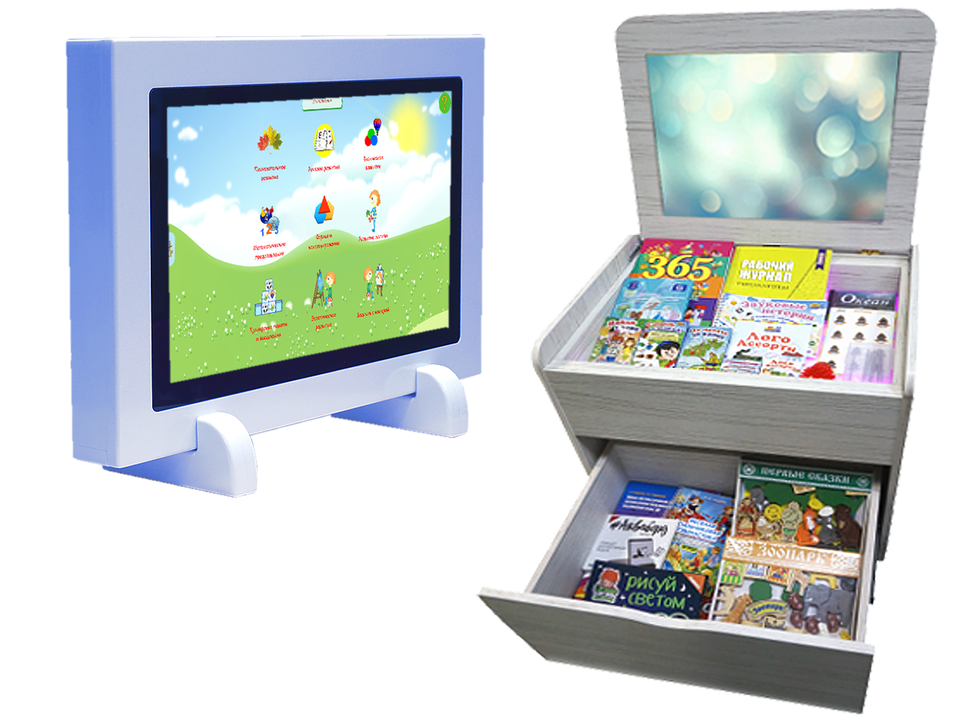 • оборудование с сенсорным антивандальным экраном для проведения ярких, результативных занятий с детьми 4-6 лет