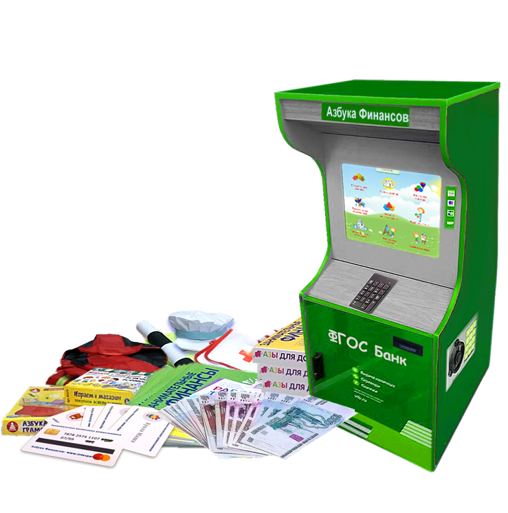 Это добавляет реалистичности играм и занятиям по финансовой грамотности и позволяет автономно использовать комплекс в целом, без подключения к интерактивной доске, используя встроенный монитор Банкомата.