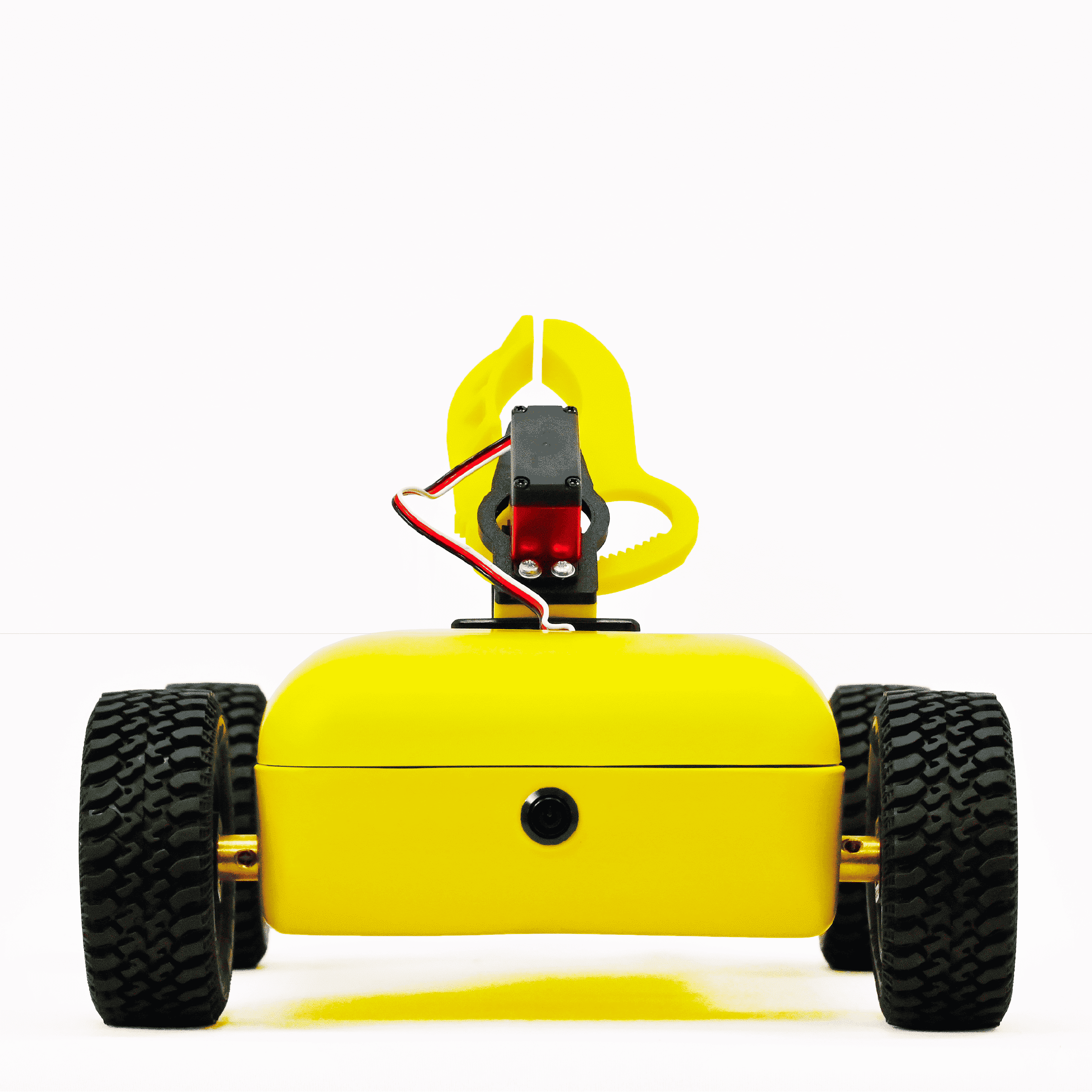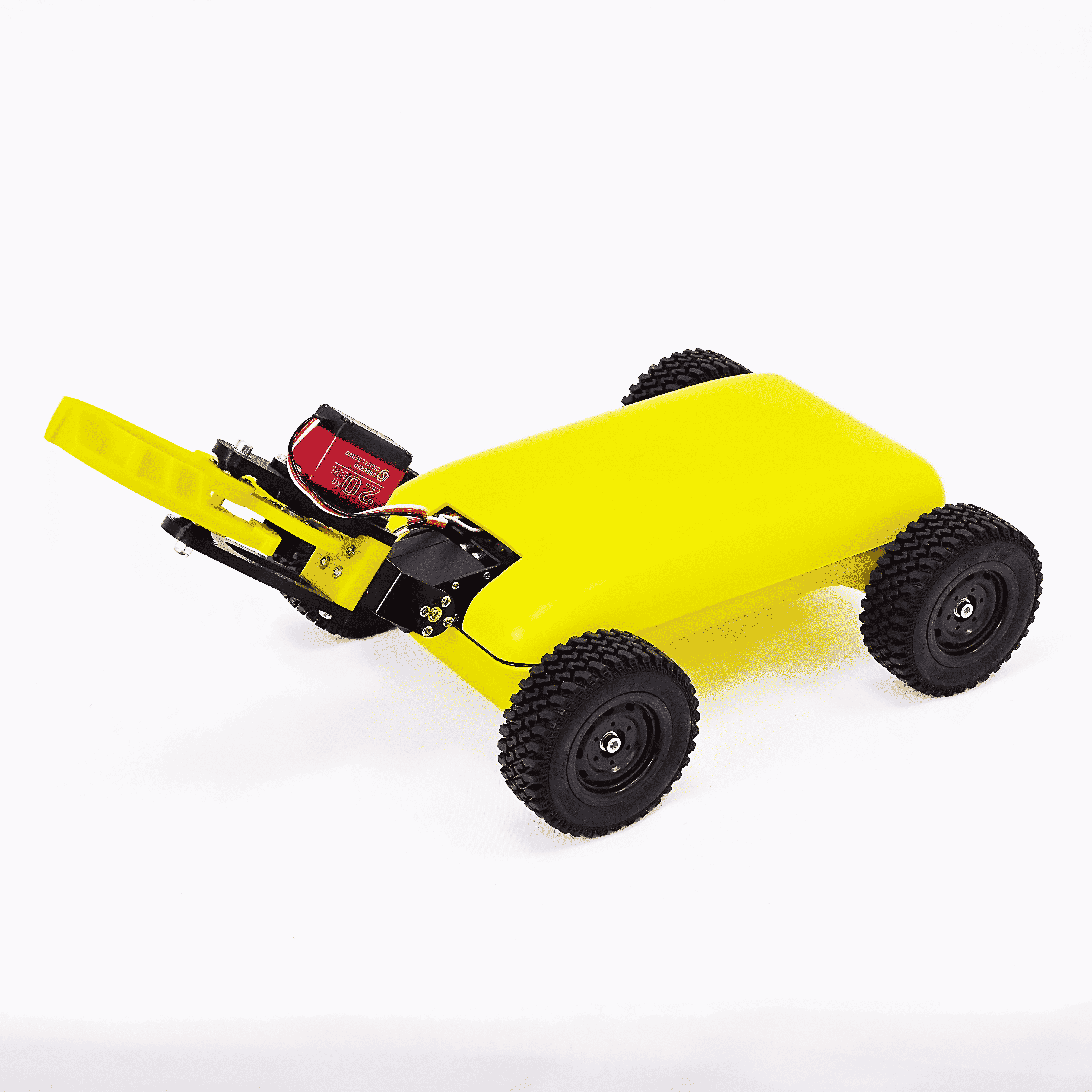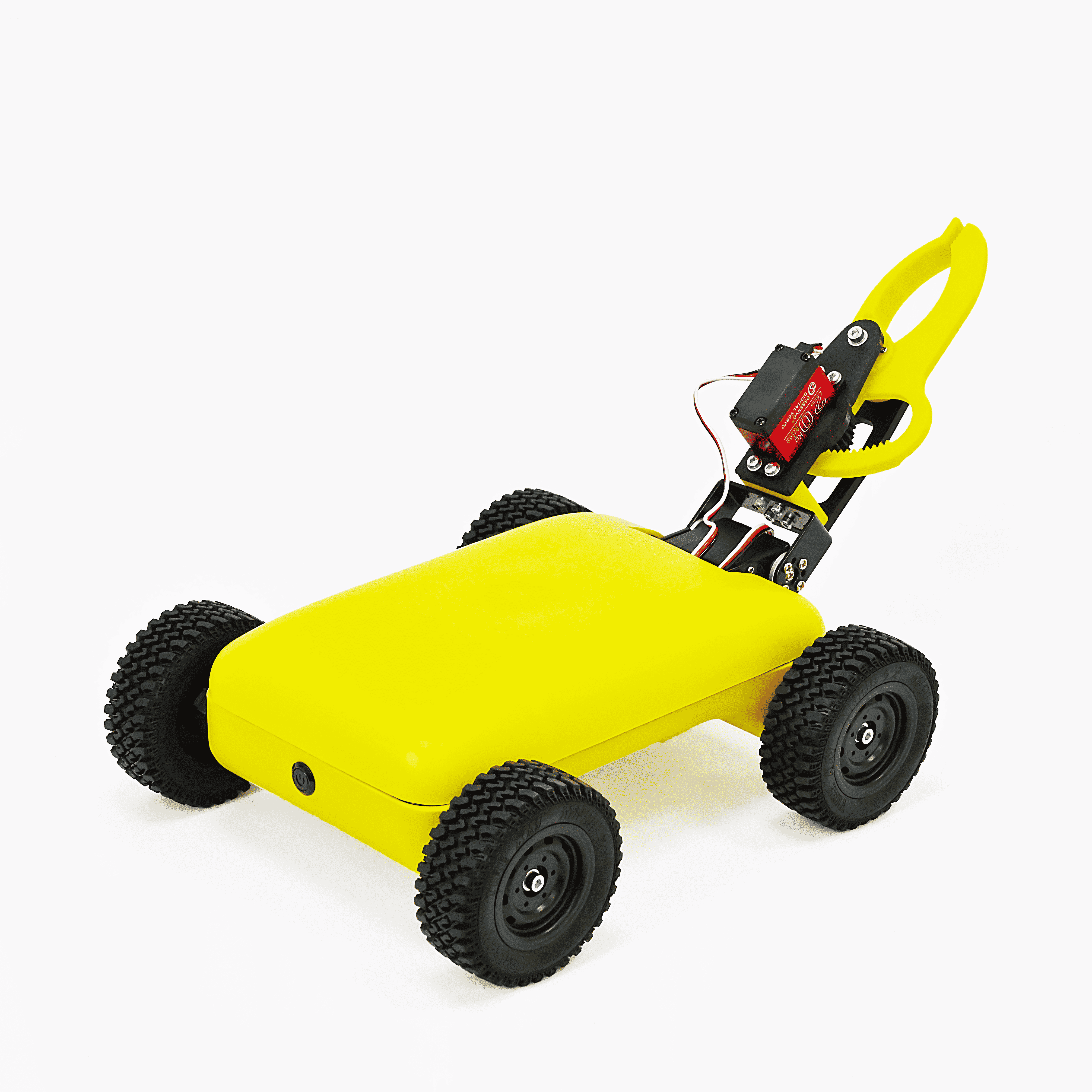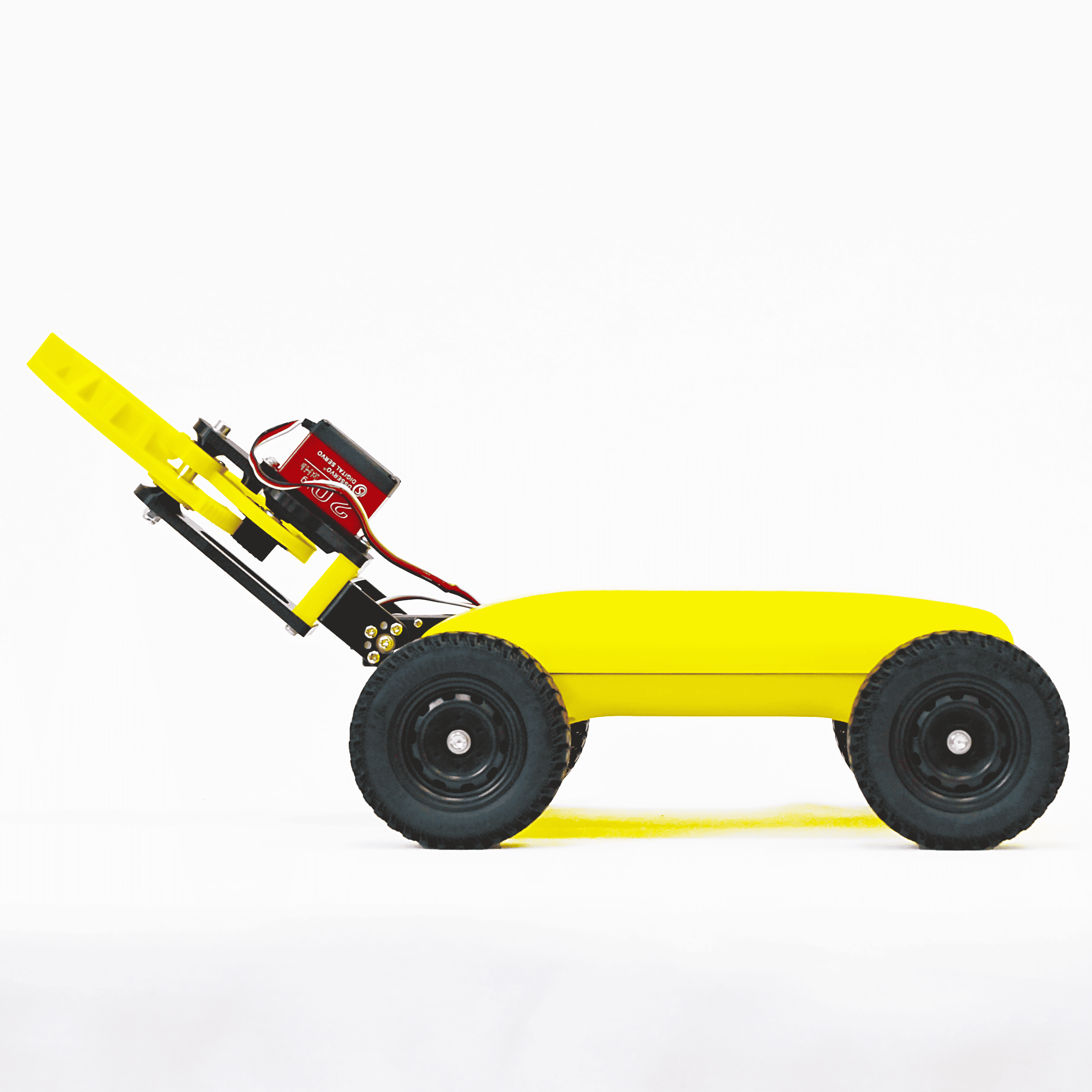 На Минибота установлен однозвенный манипулятор и датчики линии. Робот предназначен для участия в робототехнических соревнованиях, в частности «Кубок РТК Мини».