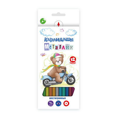 Характеристики "Мишка" MCP-9012 Набор карандашей металлик заточенный 12 цв.