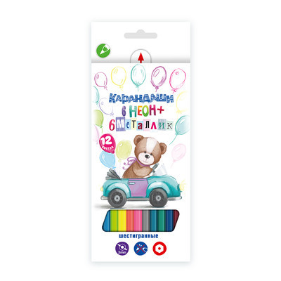 Характеристики "Мишка" MNCP-9012 Набор карандашей 6 неоновых + 6 металлик заточенный 12 цв.