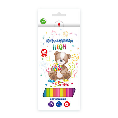 Характеристики "Мишка" NCP-9012 Набор неоновых карандашей заточенный 12 цв.