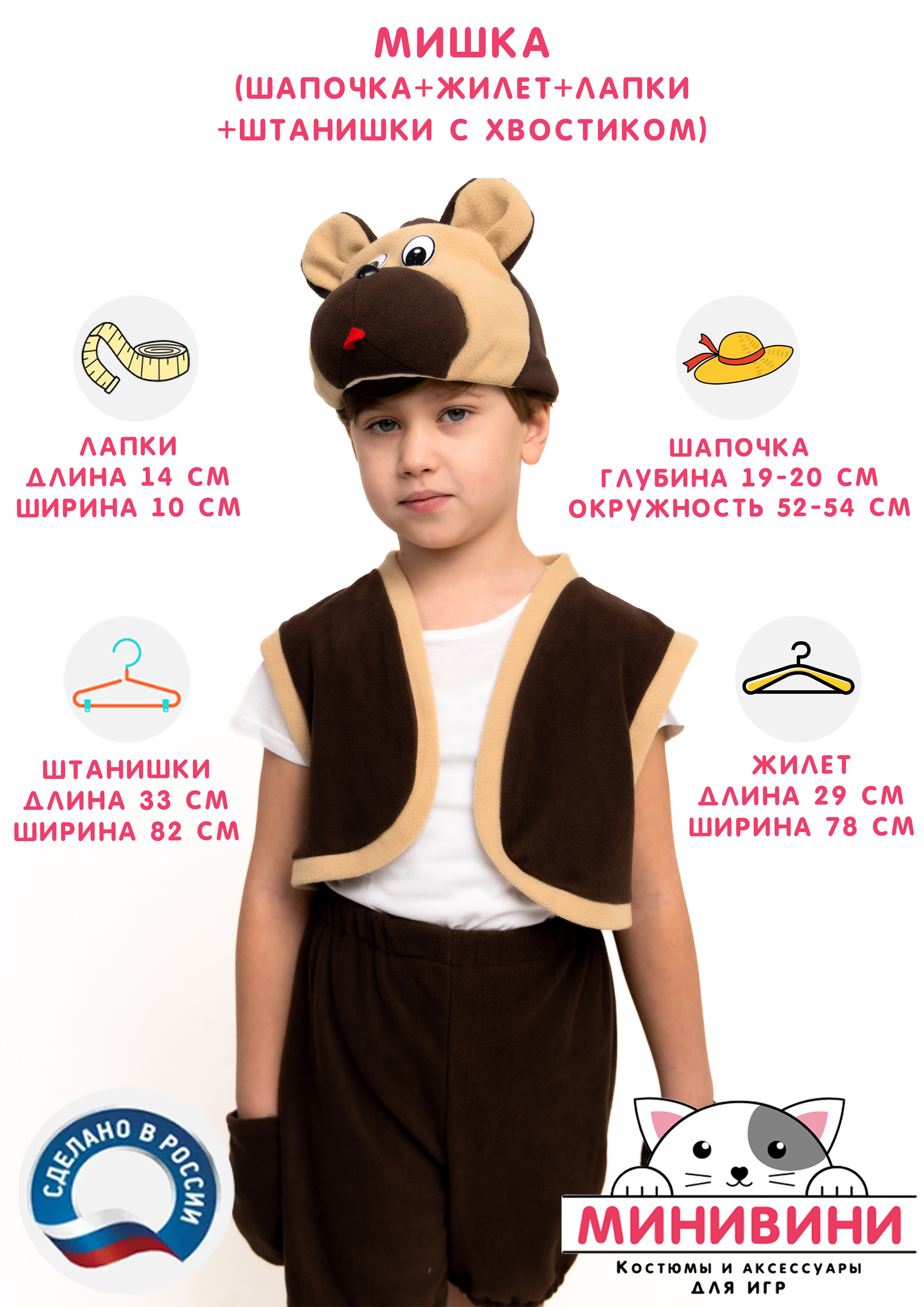 Характеристики Мишка (шапочка + жилет + лапки + штанишки с хвостиком)