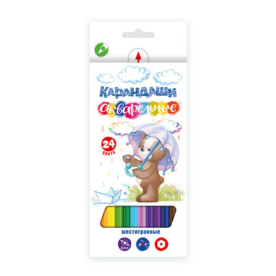 "Мишка" WCP-9024 Набор акварельных карандашей заточенный 24 цв.